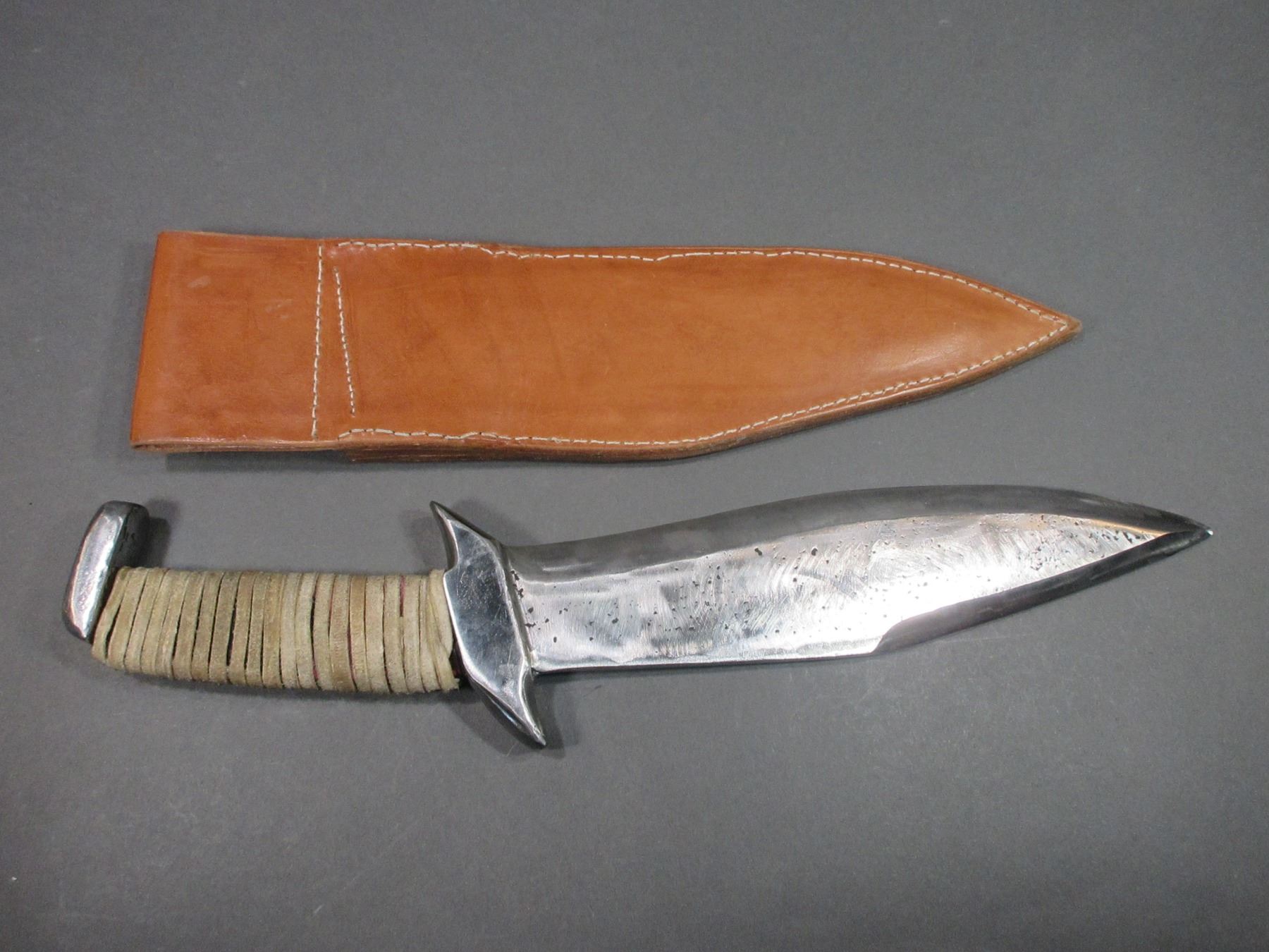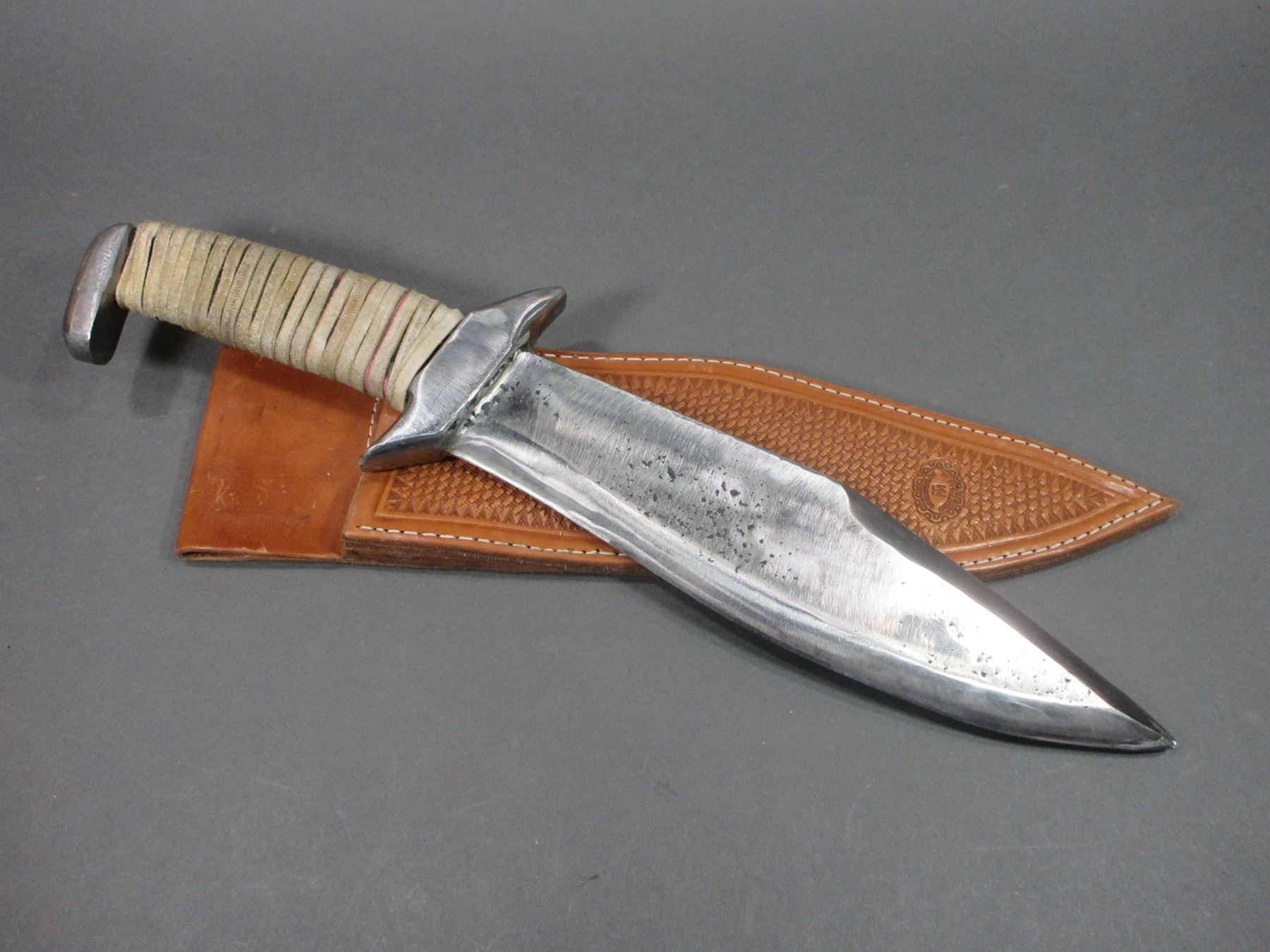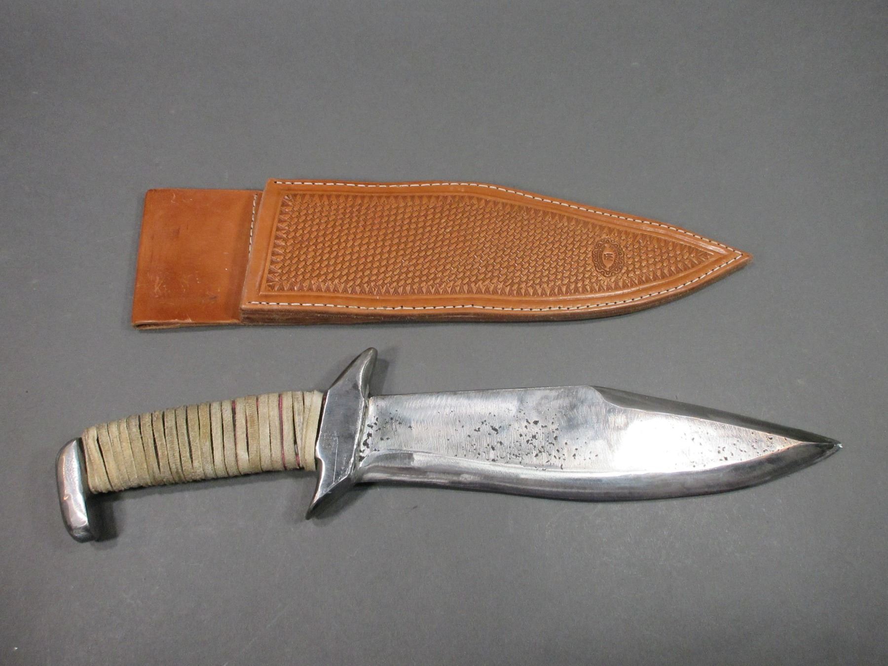 Large Heavy Bowie Knife- 12" Blade- 5.5" Leather Wrapped Handle- Sheath