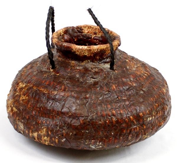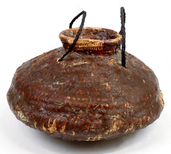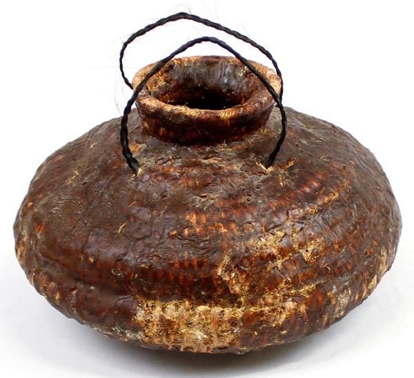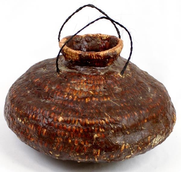 Large Historic Native American Apache Tus Basket with Horse Hair Handles, measures 9'' x 14''D