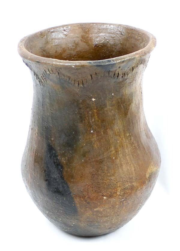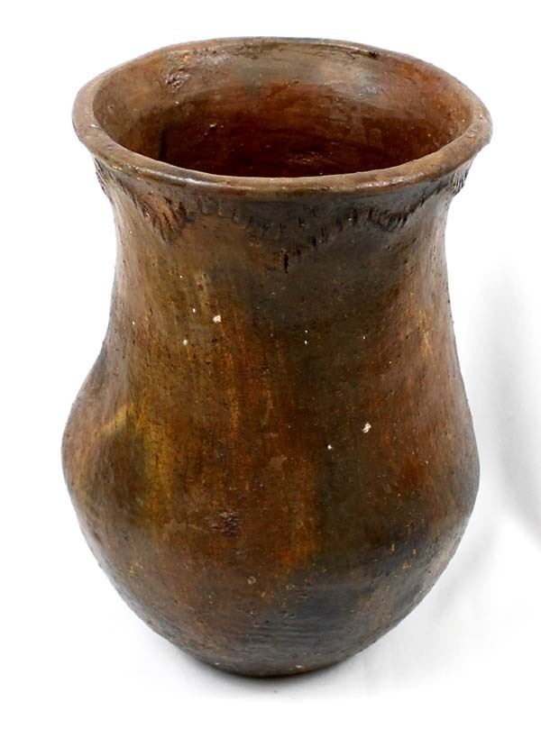 Large Historic Native American Navajo Drum Pottery Jar, measures 9'' x 7'', some pitting