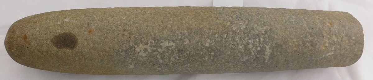 Large Hohokam Pestle, prehistoric item, made of basalt and measuring 16 x 3 inches. It is fractured on one end, likely being over 20" long before being broken. Condition: Broken on one end, see images. This item is from Tucson, Arizona. Shipping: $20.