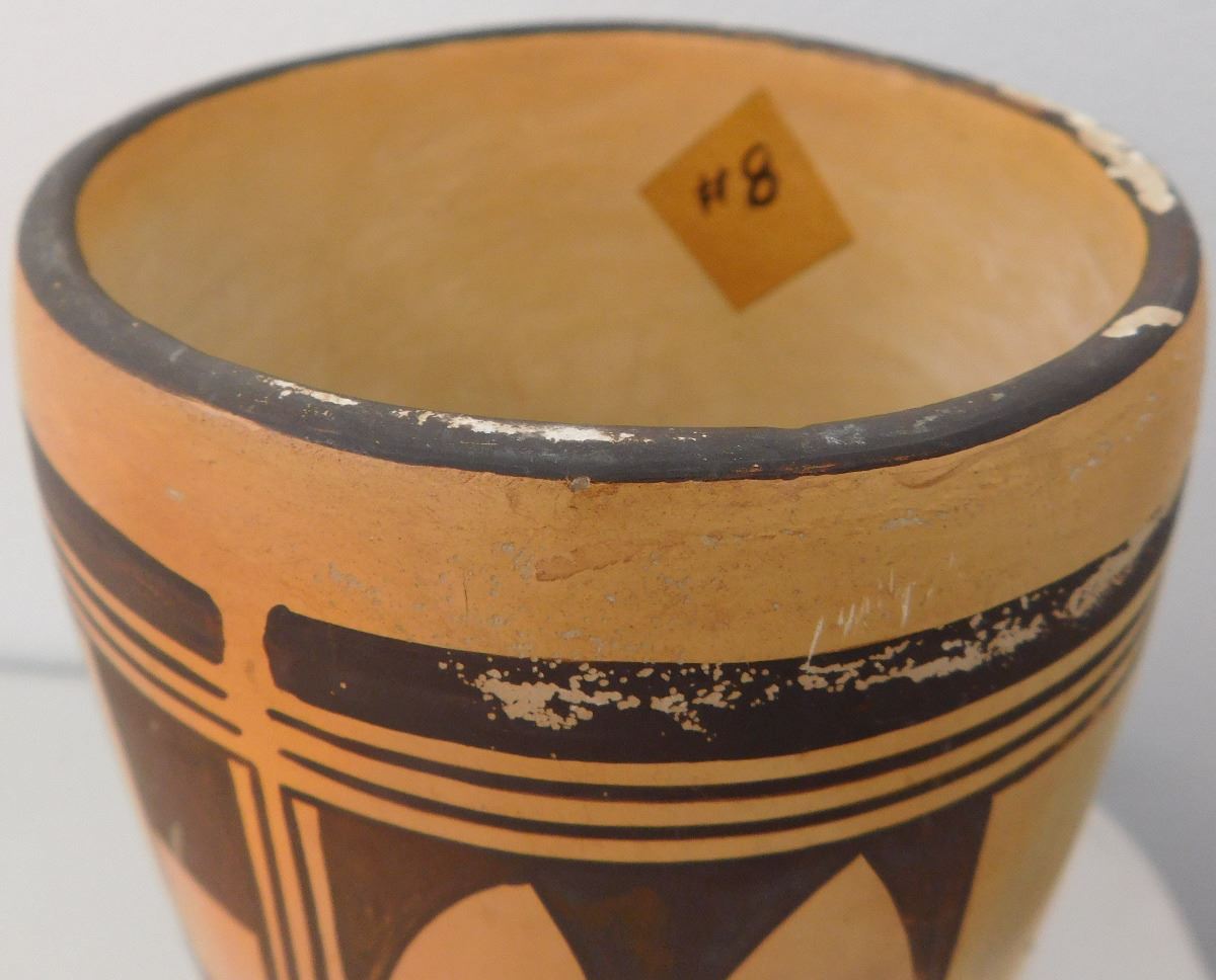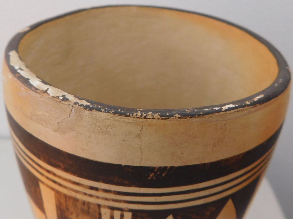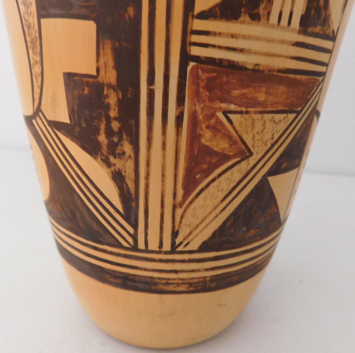 Large Hopi Cylinder, from the 1940's. This clay and paint item measures 11 x 5 inches. Hopi, Northern-Central Arizona. Condition: There are minor paint scuffs with nice paint and a design, see images. Shipping: $32.00 w/insurance.