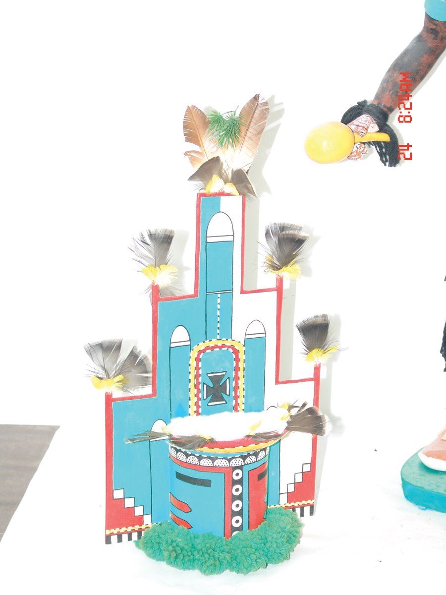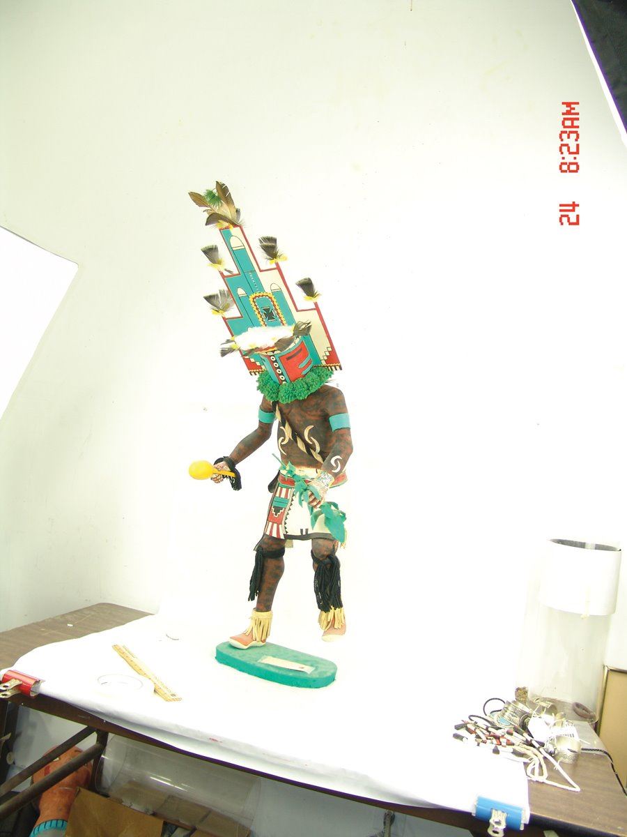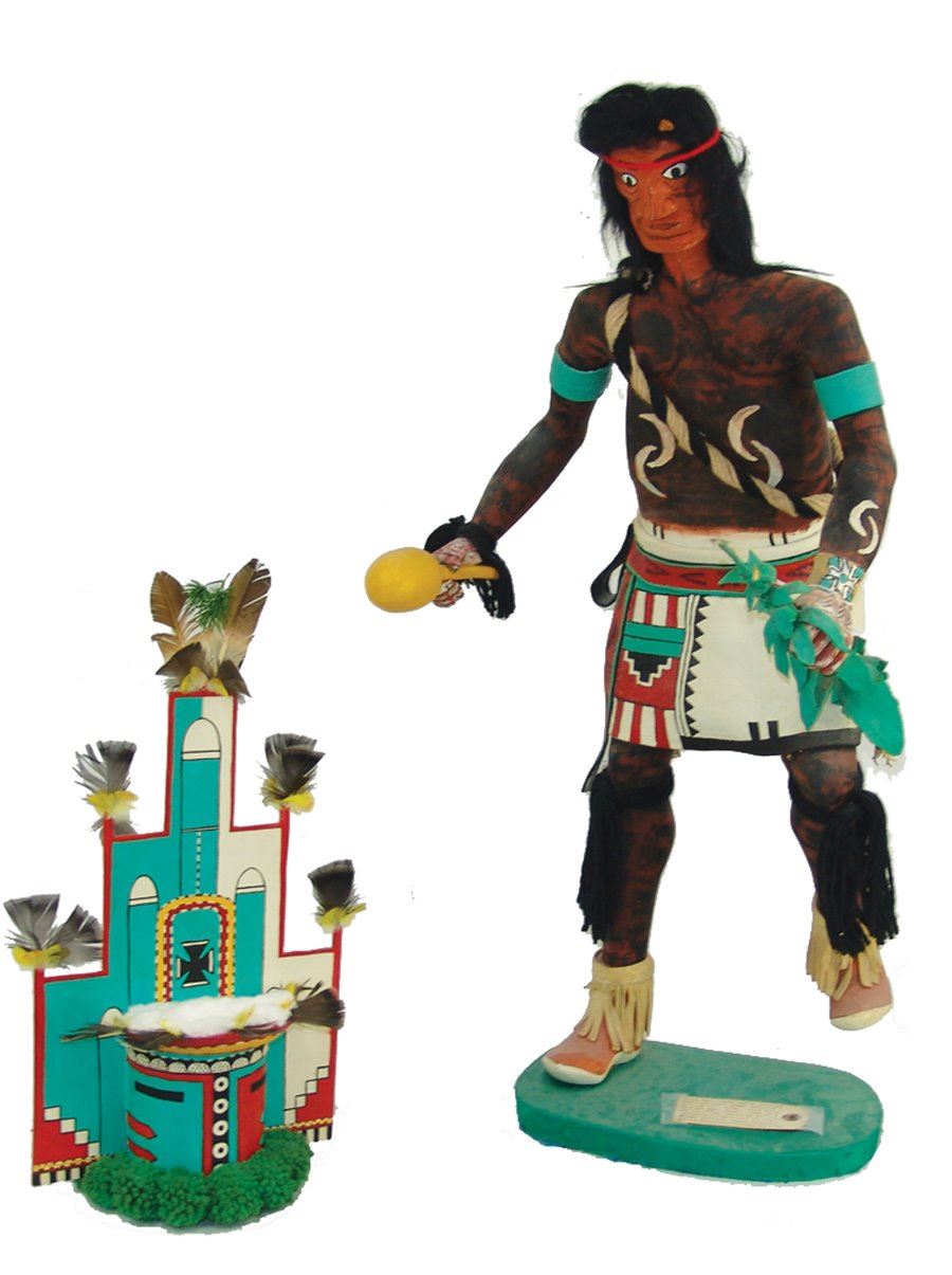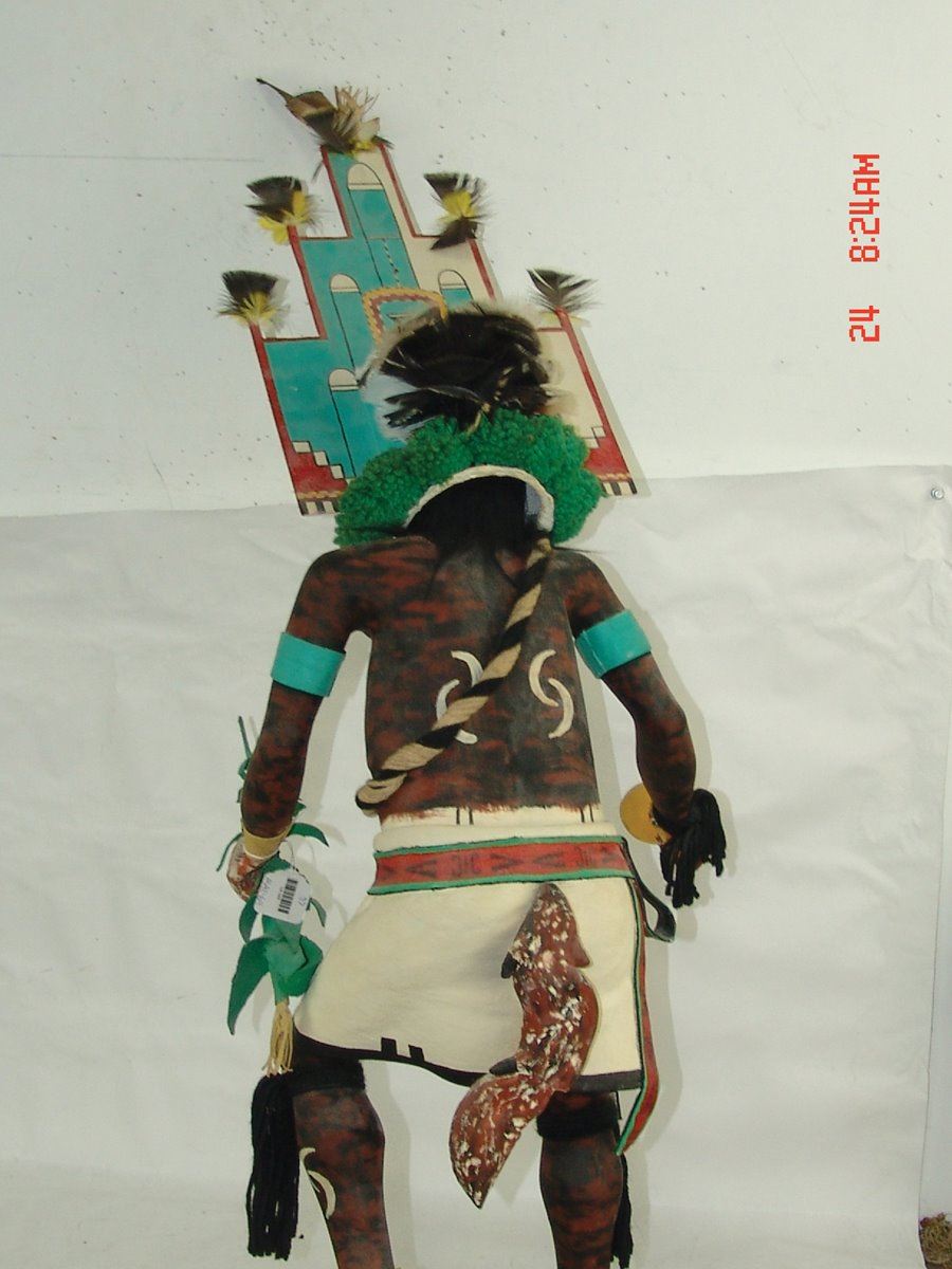 Huge vintage hand carved and painted cottonwood root "Hemis" doll with removable headdress, rattle, and cornstalk wand. Very good condition, minor repairs. A large and impressive example.,,