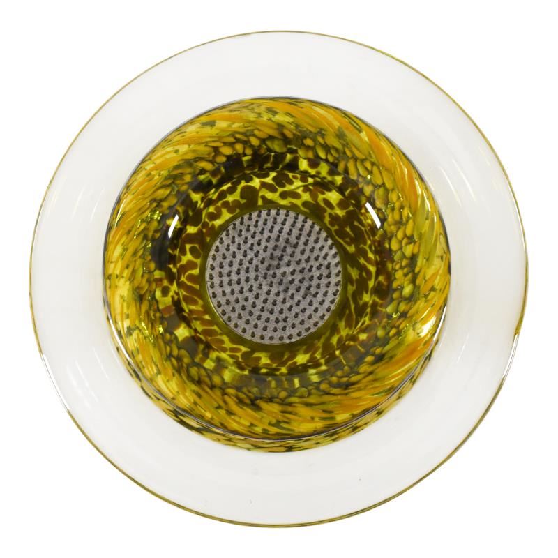 This hand-blown "Large Ikebana Flower Bowl" features a secured "Kenzan" spiked disc inside - the key to any fine Ikebana style flower arrangement. This one-of-a-kind flower bowl is hand signed by GartnerBlade Glass. Measures approx. 8" (diameter) x 4" (he