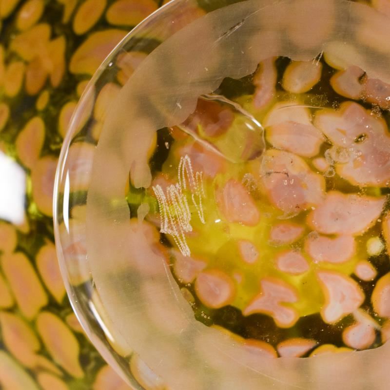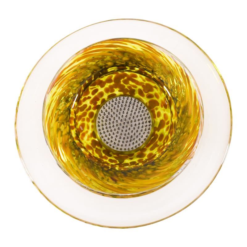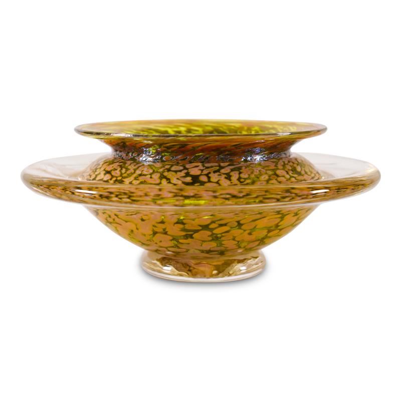 This hand-blown "Large Ikebana Flower Bowl" features a secured "Kenzan" spiked disc inside - the key to any fine Ikebana style flower arrangement. This one-of-a-kind flower bowl is hand signed by GartnerBlade Glass. Measures approx. 8" (diameter) x 4" (he