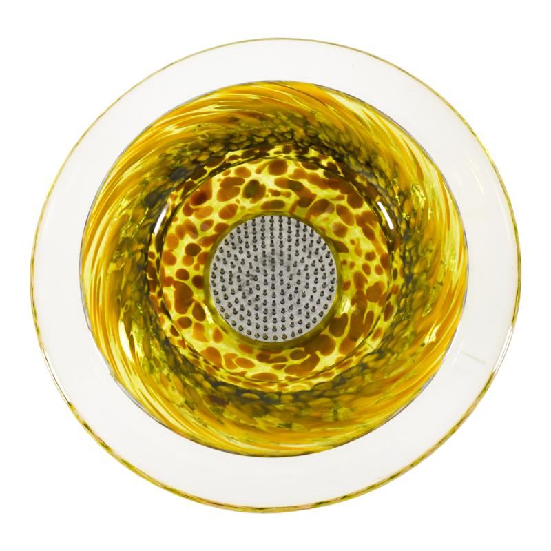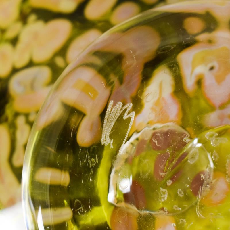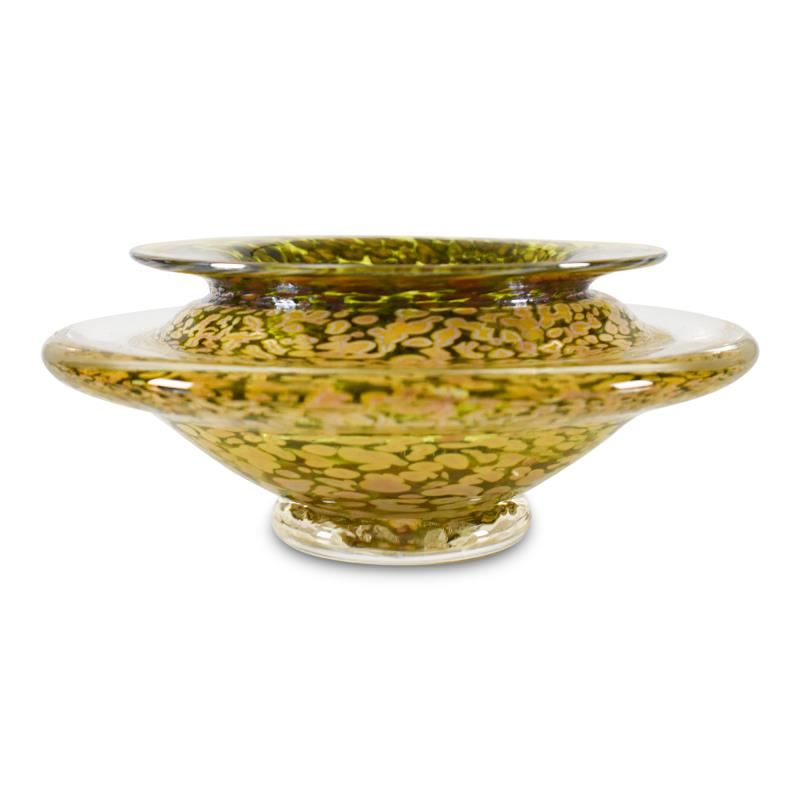 This hand-blown "Large Ikebana Flower Bowl" features a secured "Kenzan" spiked disc inside - the key to any fine Ikebana style flower arrangement. This one-of-a-kind flower bowl is hand signed by GartnerBlade Glass. Measures approx. 8" (diameter) x 4" (height).