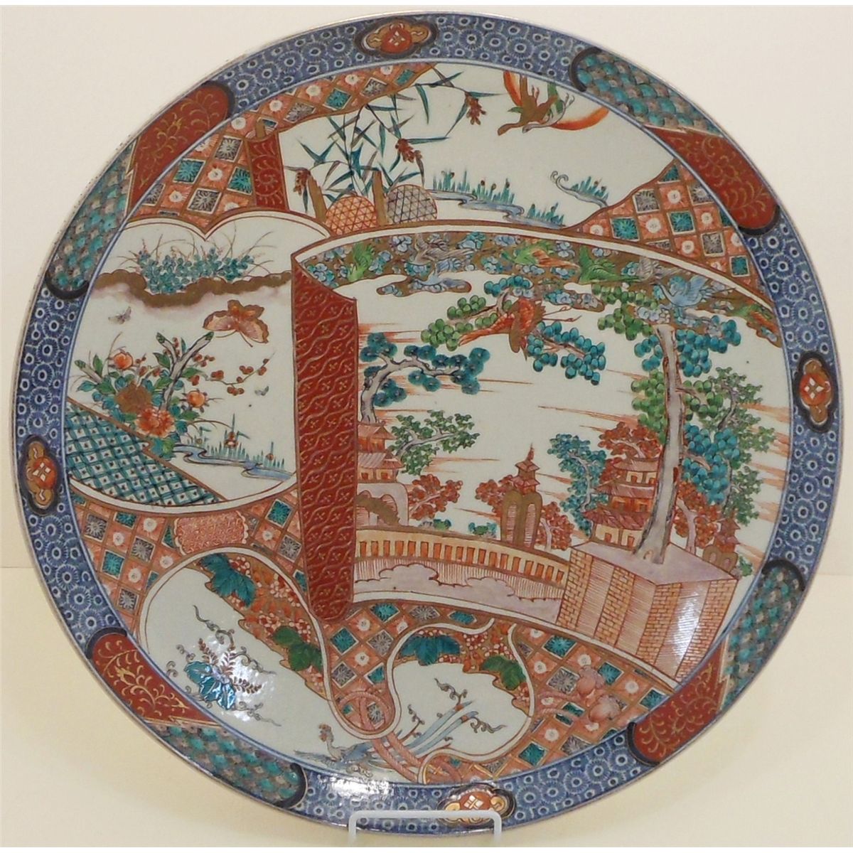 18 1/2" Diameter. Japanese Imari Charger. Floral Designs Painted on the reverse. Great Condition.