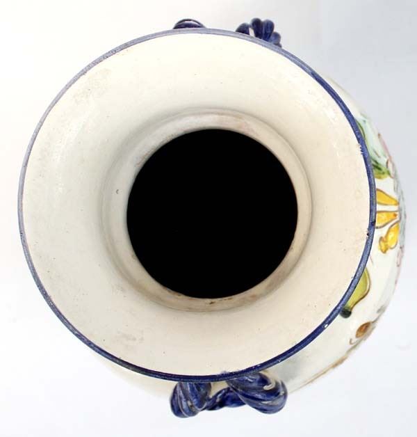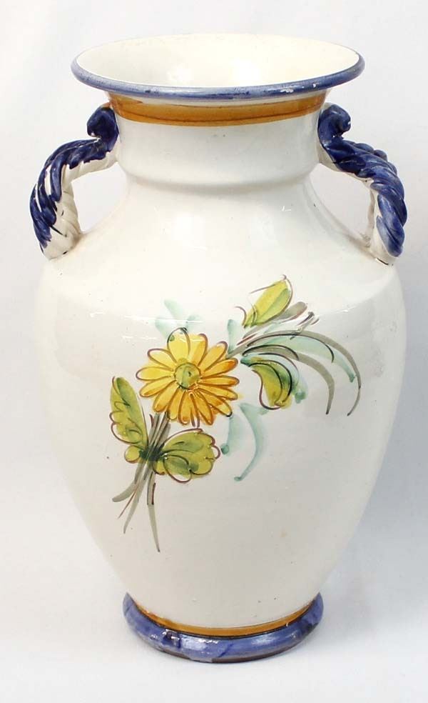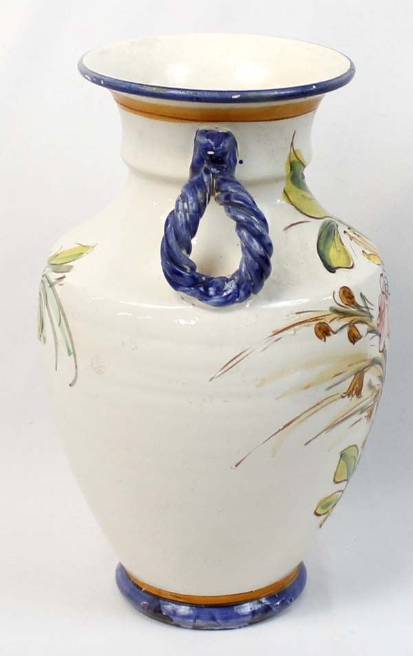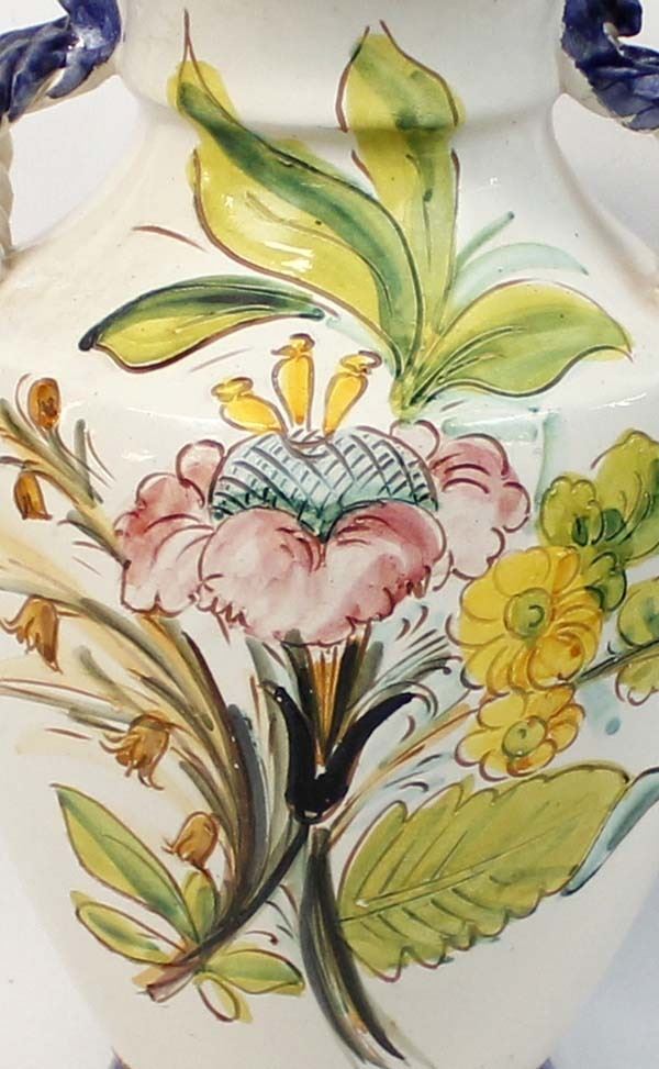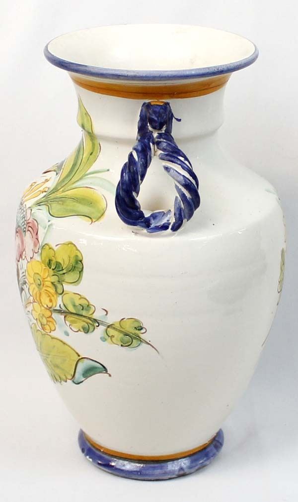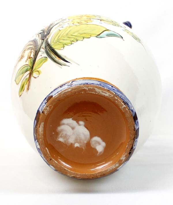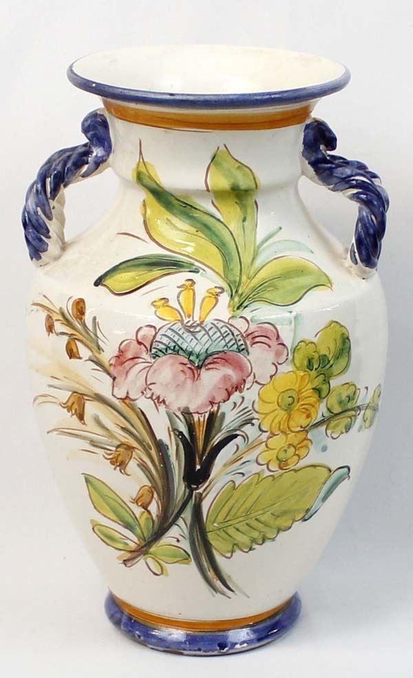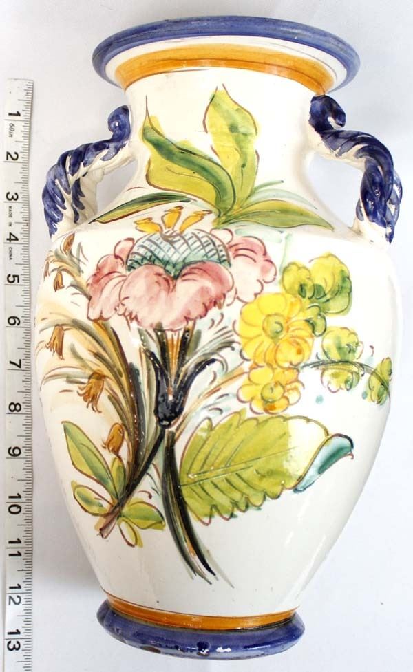 Large Incised Pottery Vase, measures 9'' x 12'', double handles, flower motif in beautiful colors