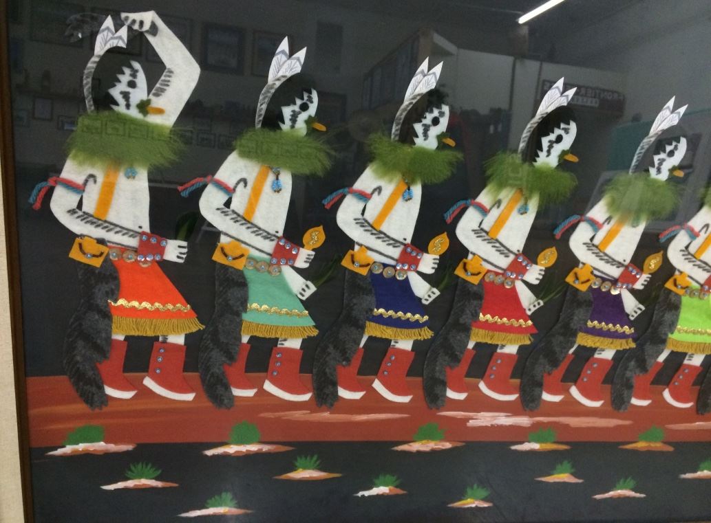 This original art is made from small pieces of felt which were cut and constructed into the dancing scene pictured. Very unique! It is under glass and measures 43” X 31” including the frame. In great condition!