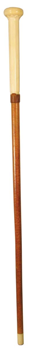 Large Ivory Handled and Tipped Cane. Leather bezel and fluted handle. Excellent condition. 33 inches long.
