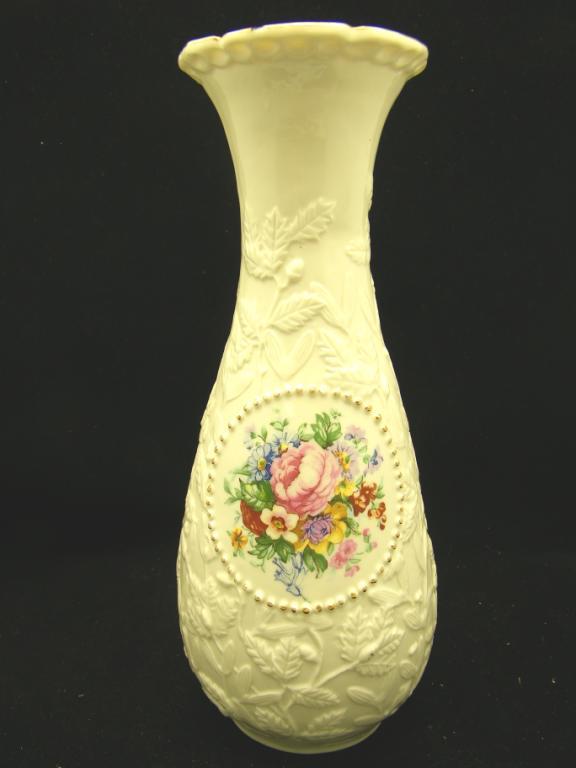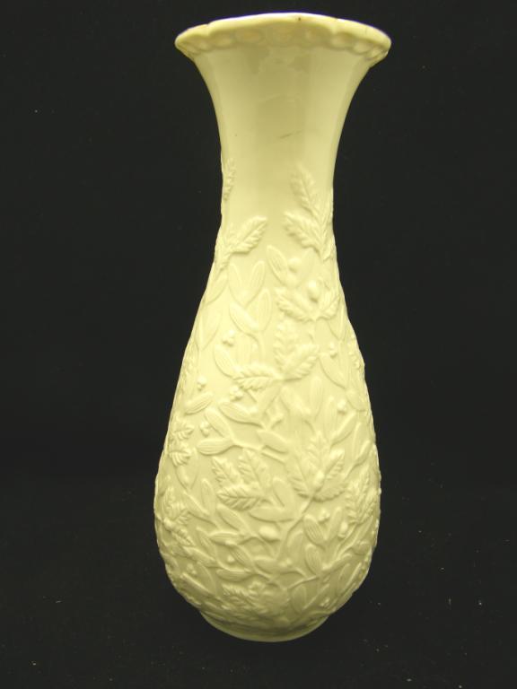 Large Ivory Vase W/Embossed Flowers/Leaves