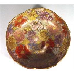 Large Japanese Satsuma pottery punchbowl, finely painted and gilded with flowers to the interior and exterior, character mark to base, 30cm diameter