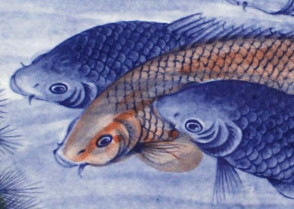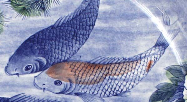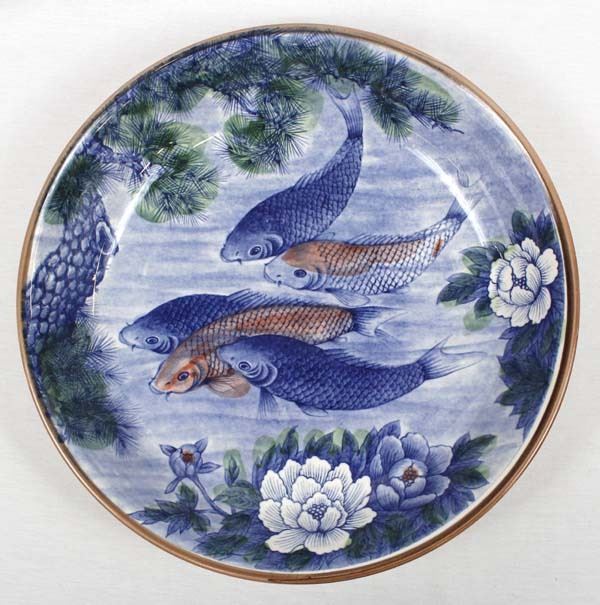 Large Japanese Sun Ceramics Bowl, Koi Fish Motif