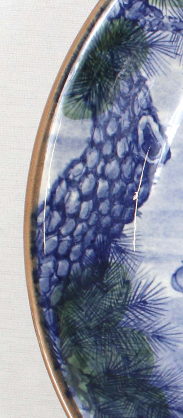 Large Japanese Sun Ceramics Tominaga Bowl, Koi Fish Motif, measures 2.5''H x 12.5''D, beautiful colors, marked on the bottom