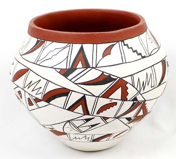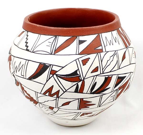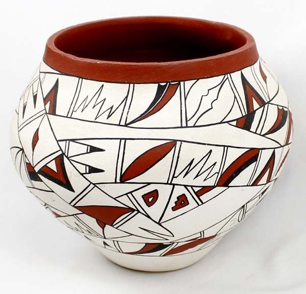 Large Native American Jemez Pottery Olla by Melinda Toya Fragua, measures 8.25'' x 10'' and is signed on the bottom, nice heavy thick walled olla, FYI: ''Melinda is the award winning daughter of Mary E. Toya and the sister of Marie Toya. She specializes in storytellers, nativities, koshares and friendship pots. Born in 1959, she has been making pottery for over 25 years. She was taught by her mother.''