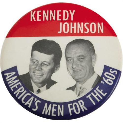 <B>Large John Kennedy and Lyndon Johnson Jugate Presidential Campaign Button,</B></I> 4. Very fine. <BR><BR><b>Shipping:</b> Miscellaneous Collectibles, Smal (<a target="_blank" href="http://www.heritageauctions.com/common/shipping.php">view shipping information</a>)