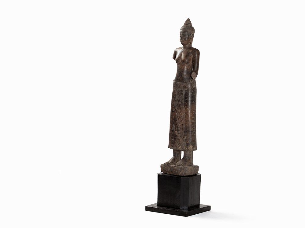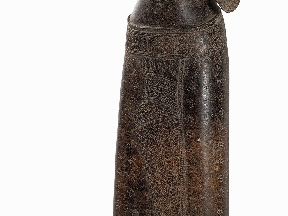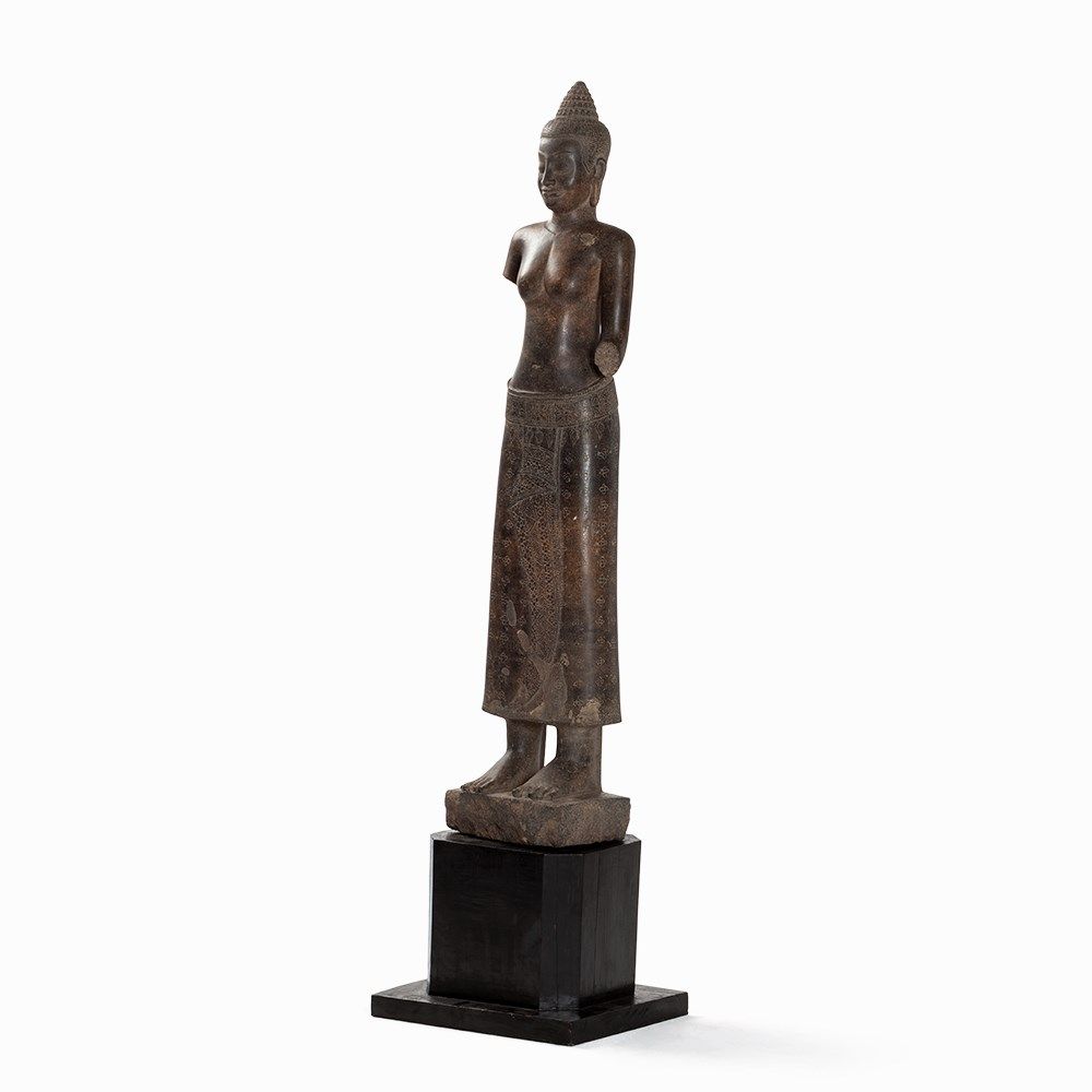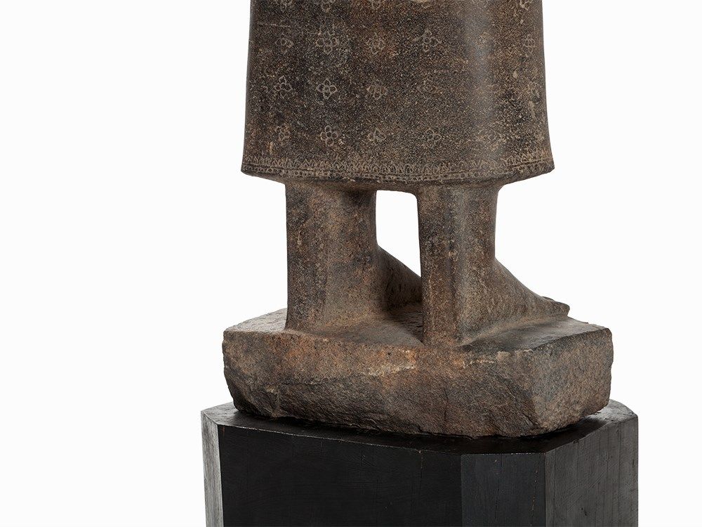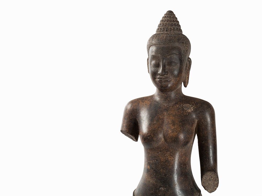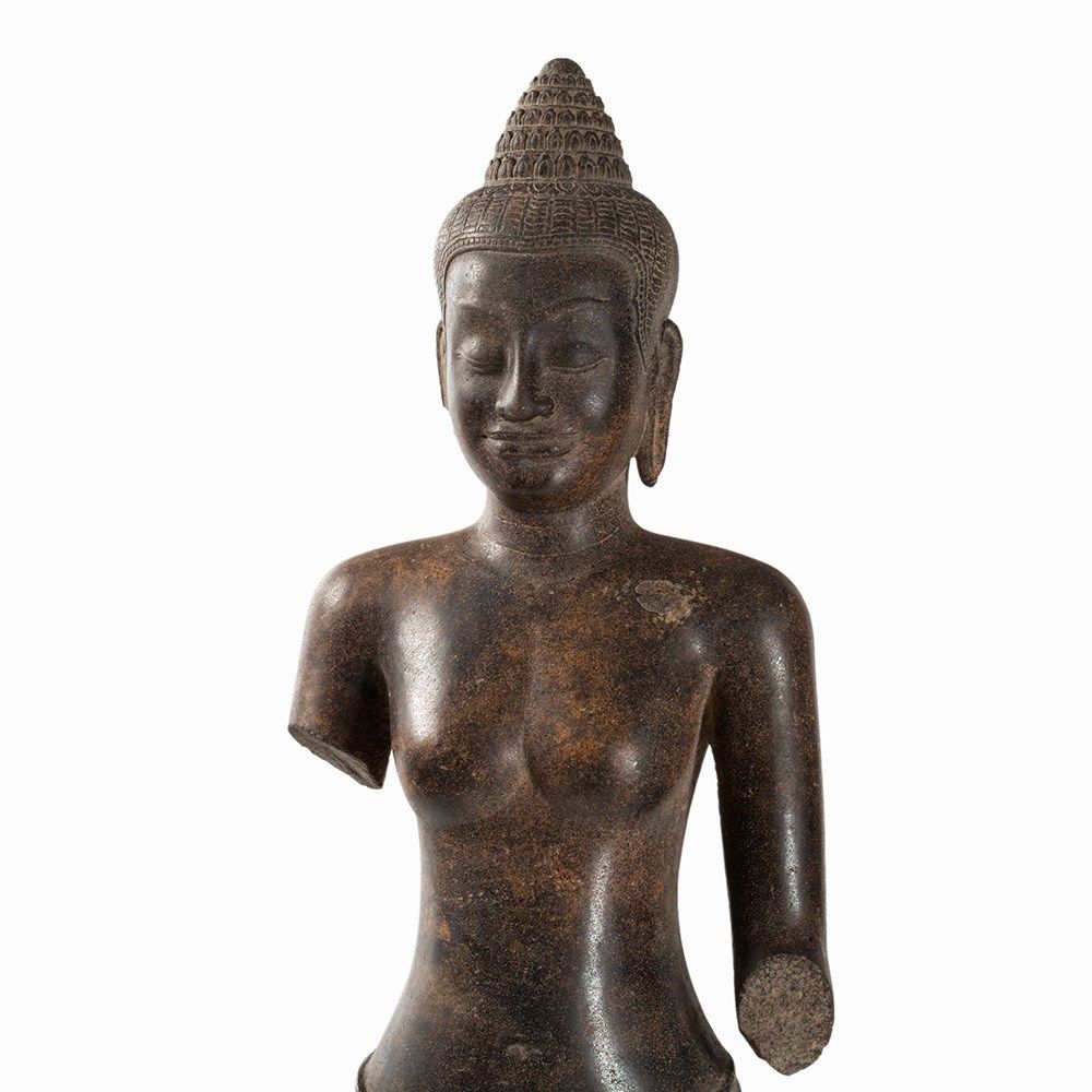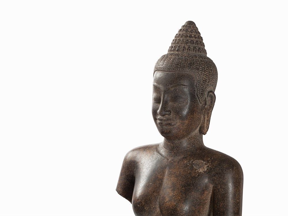 Large Khmer Sandstone Figure of a Female Deity, 12th C.