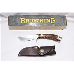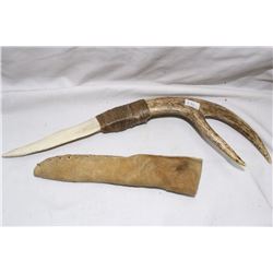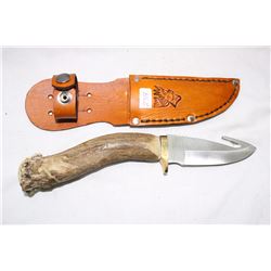 Handmade Knife with Gut Hock Antler Handle Leather Sheath
