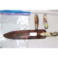 2 Knives: 1 SCHRADE Old Timer 1 FRONTIER 4815 Lockblade with Sheath