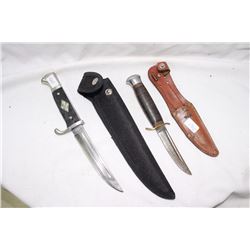 2 Knives: 1 Fillet, 1 Hunting with Wood Handle and Sheaths