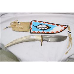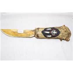 Native Made Knife Antler Handle - Beautiful Beadwork Sheath
