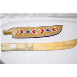 Ceremontal Knife Made from Bone Rawhide Handle Beadwork Sheath