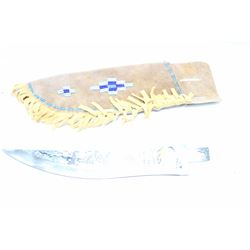 .440 Steel Eagle Etched Blade with Beadwork Native Sheath