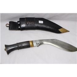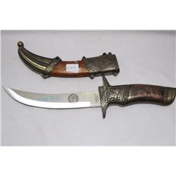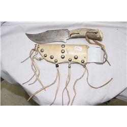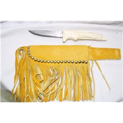 Native Bird Carved Handle Knife with Leather Sheath Brass Studs