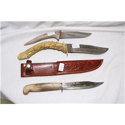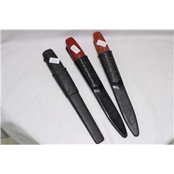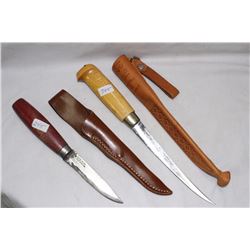 3 Knives: 1 Fillet , 2 Hunting. 2 With Wood Handles Made in Sweden
