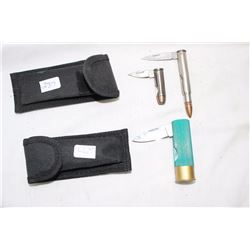 3 Bullet Like Knives 1 - 12ga 1 -30.08 1-44 cal & 2 Sheaths