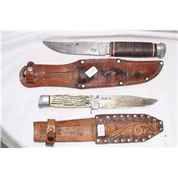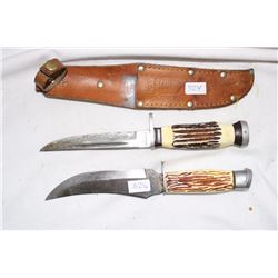 2 Hunting Knives 1 Sheath 1 Stamped Towika Ireland