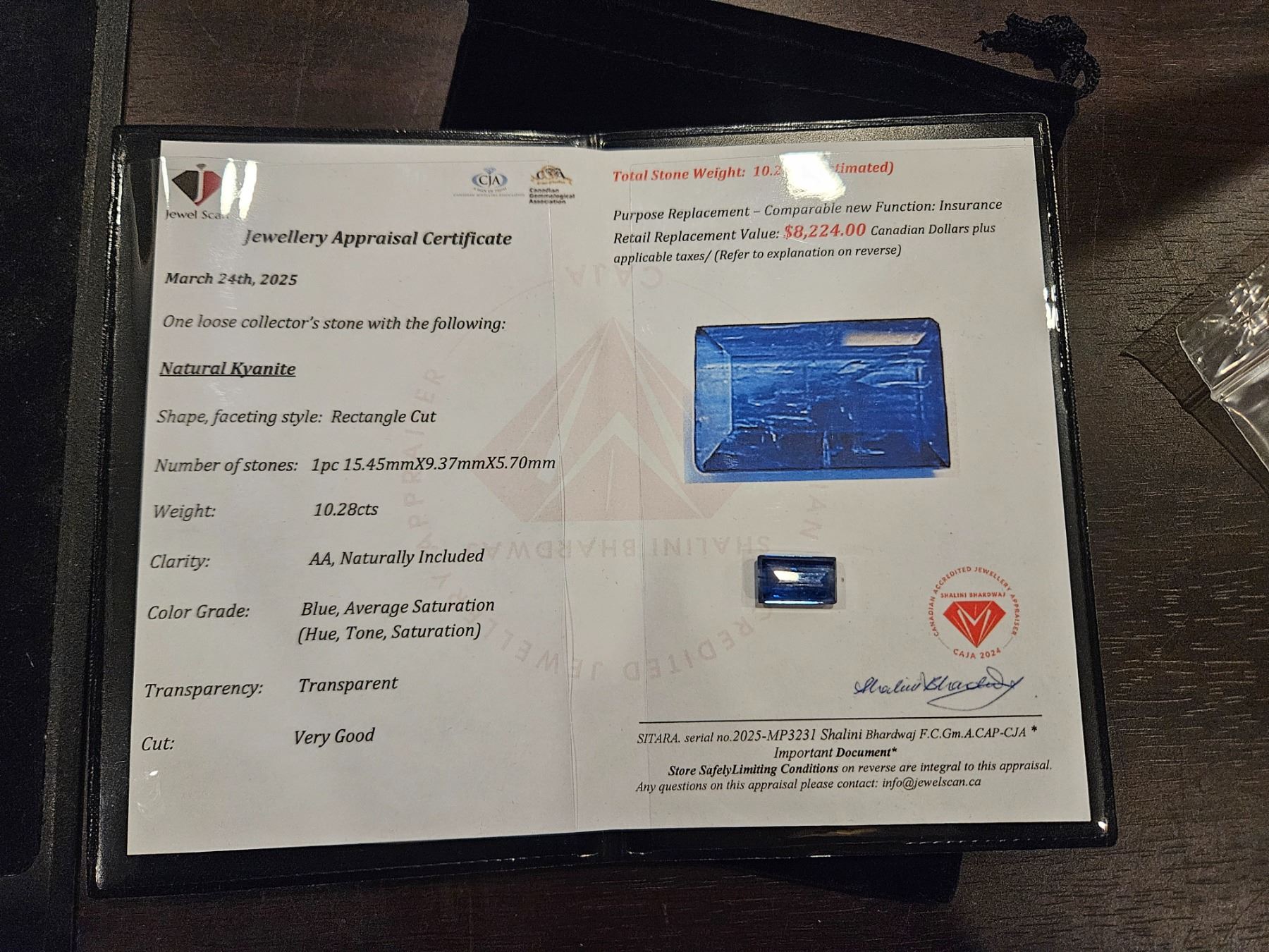 10.28 total weight, Kyanite stone- Rectangular shape. Retail value $8,224.00
