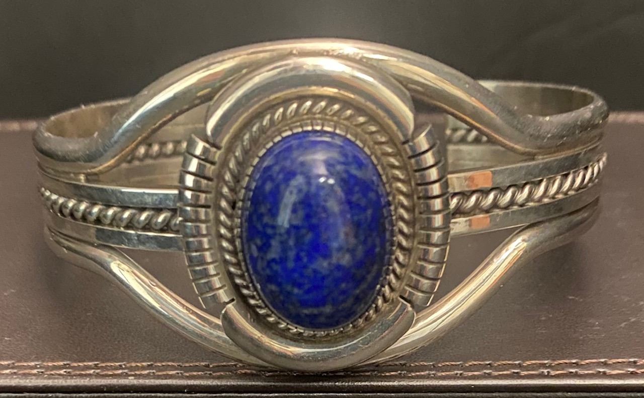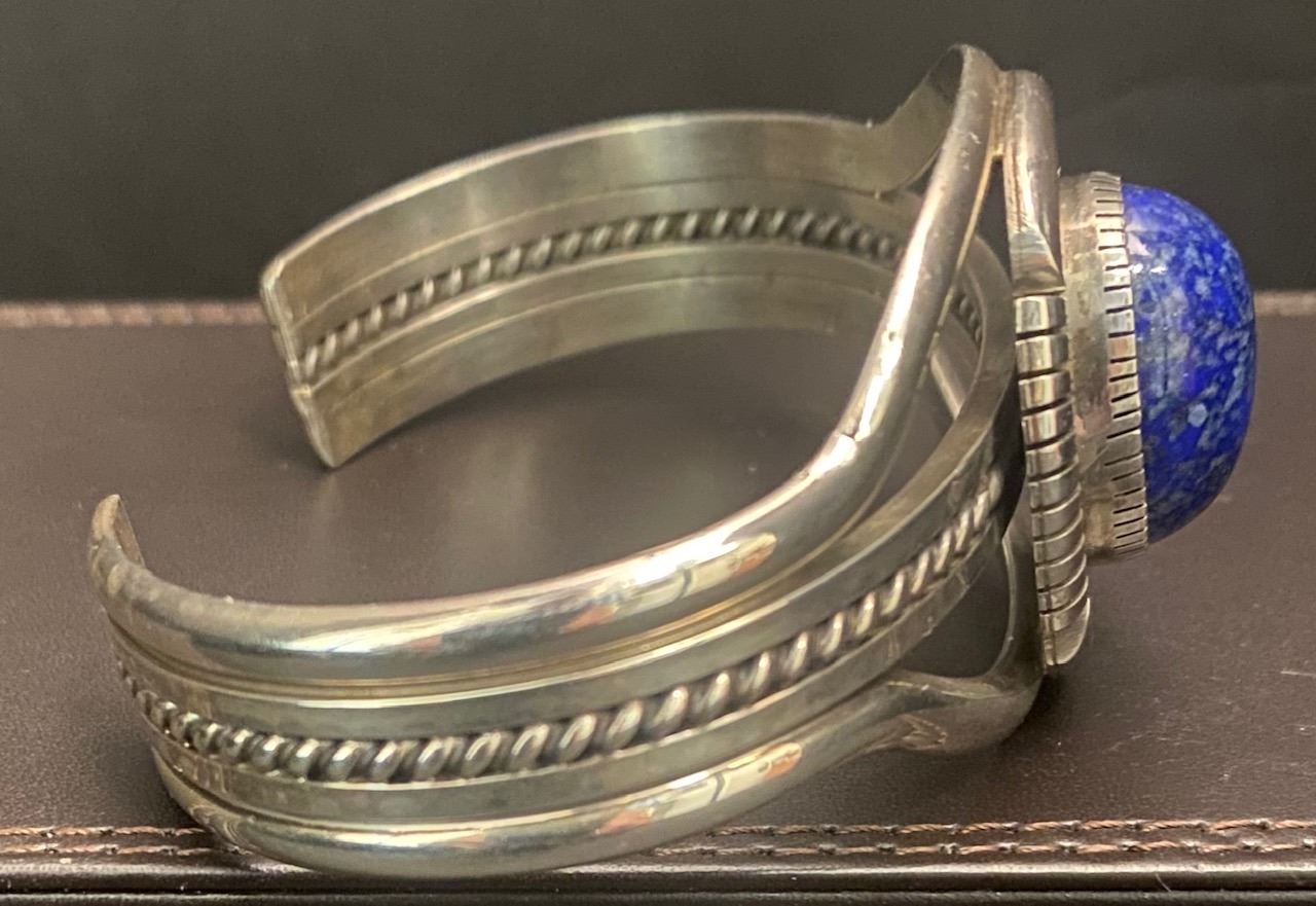 Large Heavyweight Lapis Bracelet. Measures 1 3/8ths"-high, 5 5/8ths"-Inside and 1 1/4" opening. 57-Grams!!!