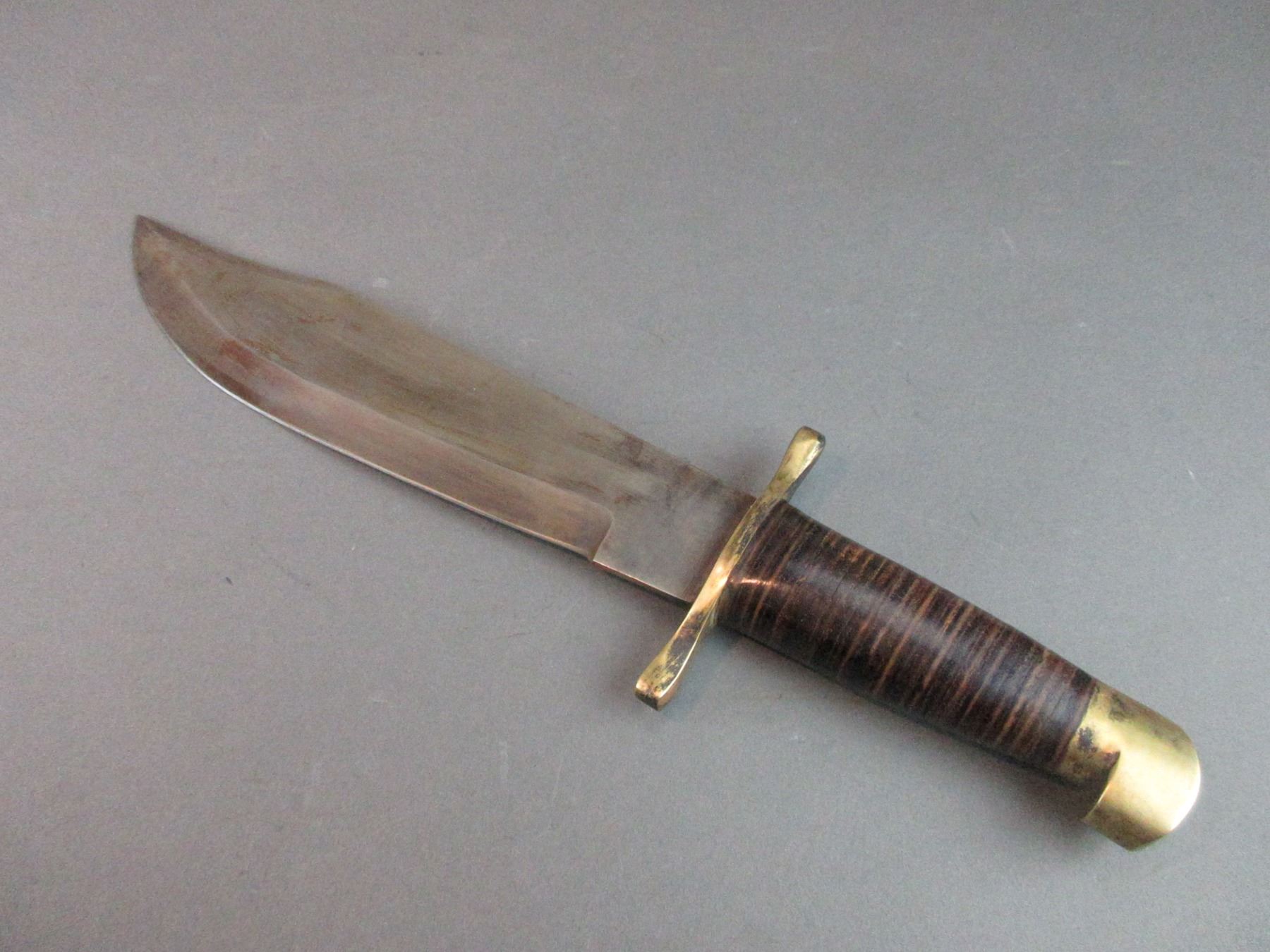 Large Leather Handled Clip Point Bowie Knife- 10.75" Blade- 5" Handle