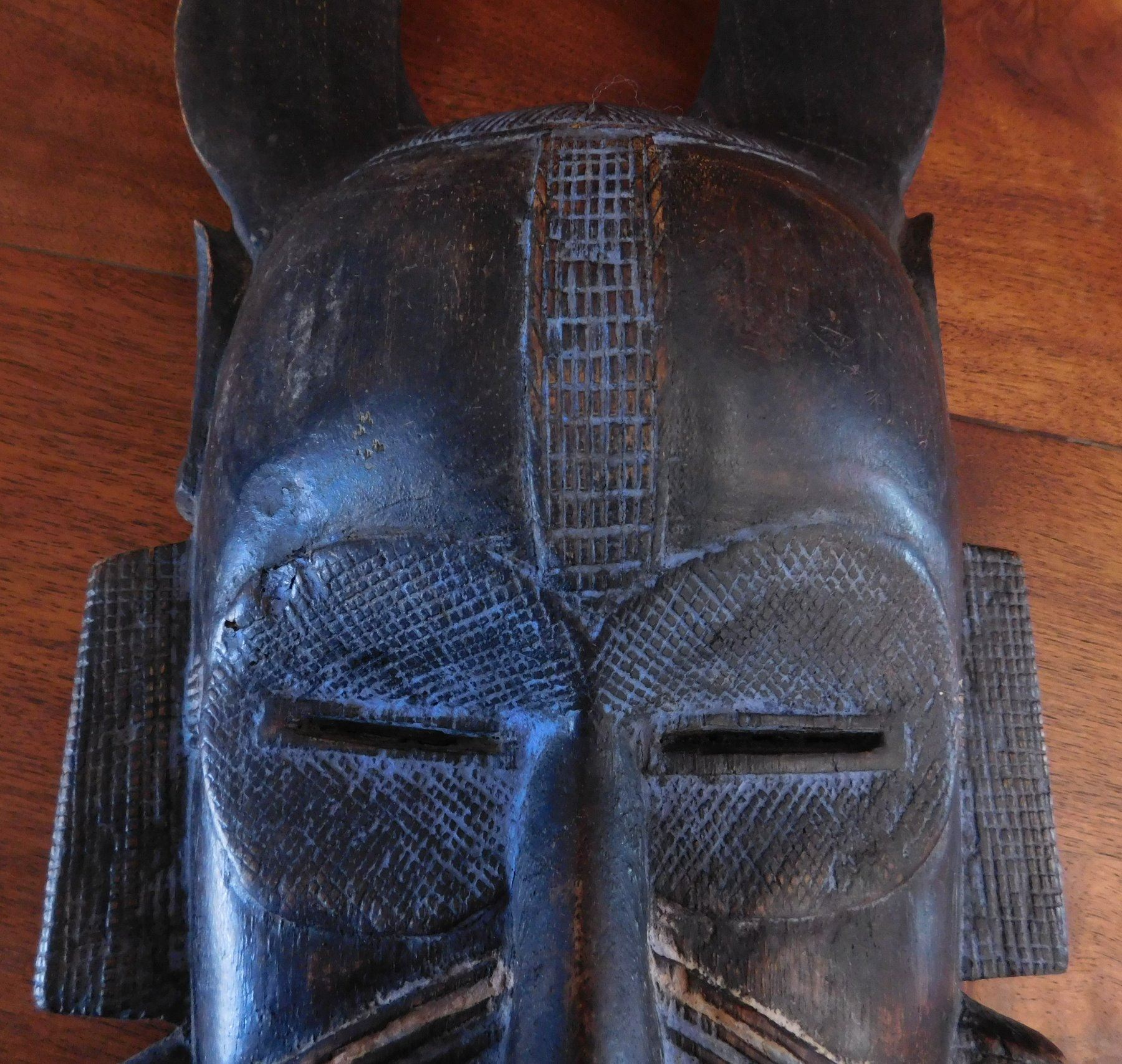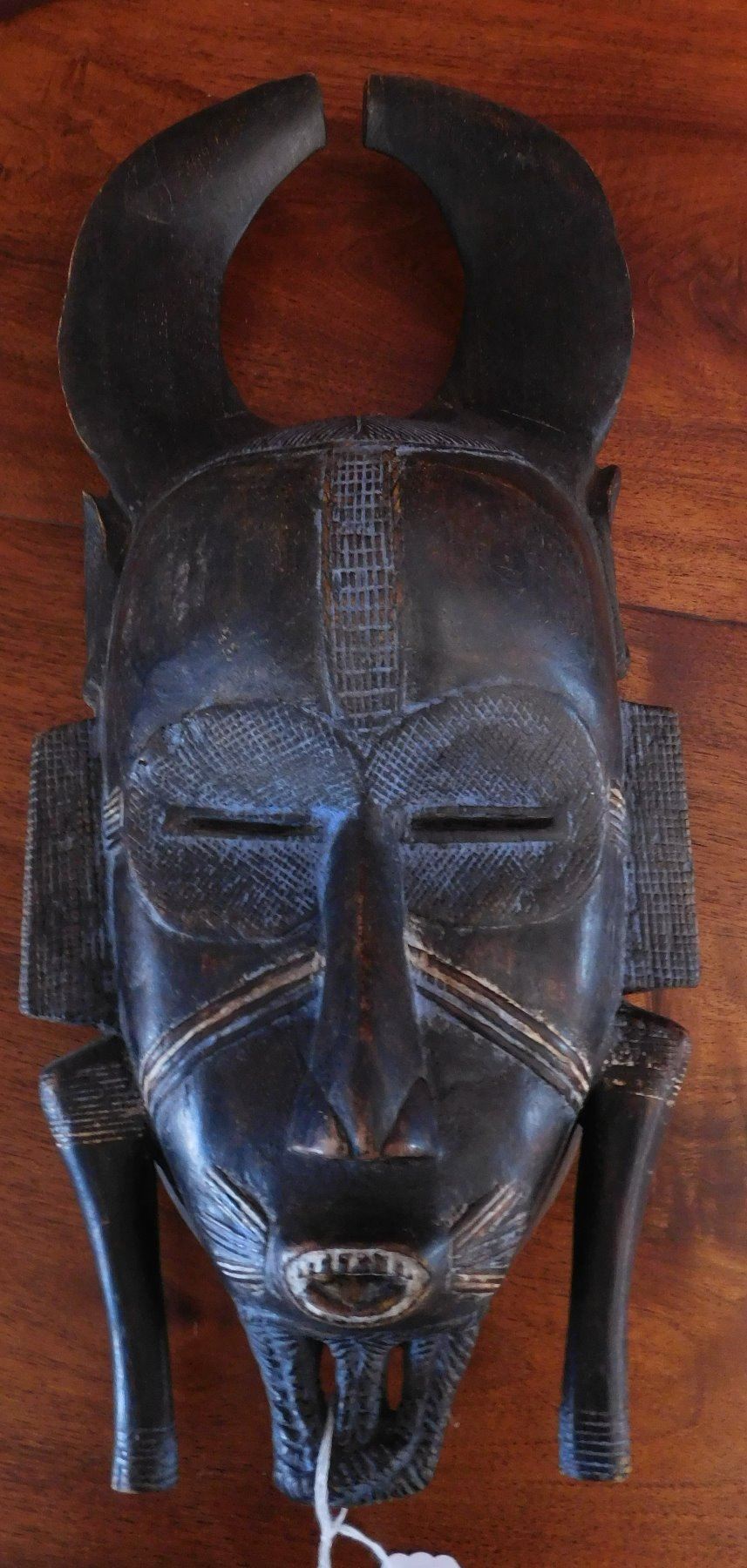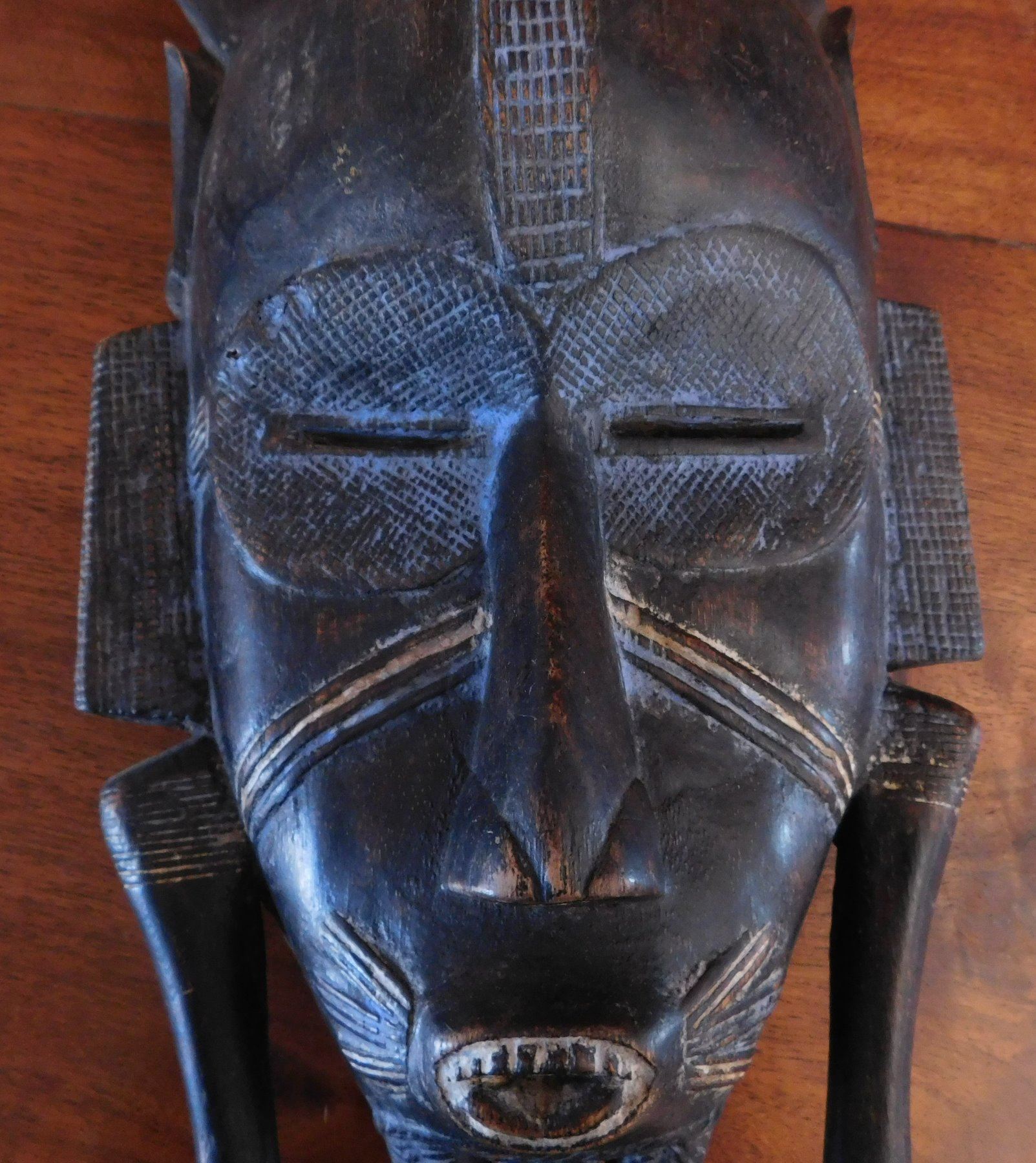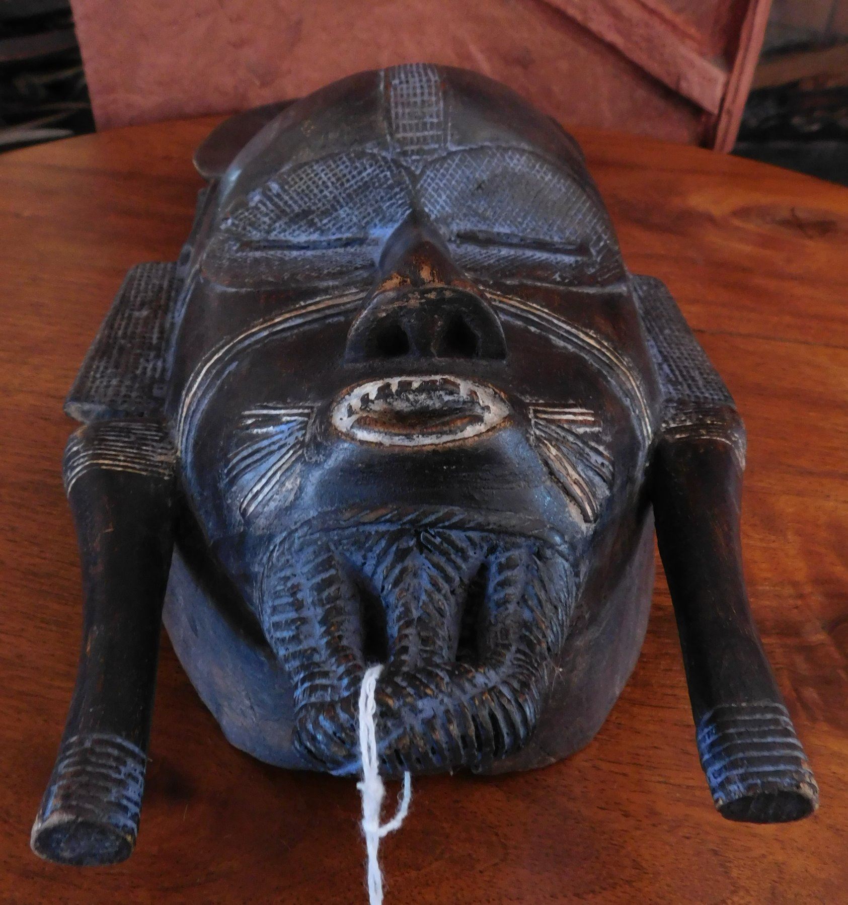 Large Ligbe Mask, early 20th century item. Made of wood and paint, the item measures 7" x 17". Ivory Coast. Condition: Good, some wear and paint loss, see images. Shipping: $30.00 w/insurance and signature, due to size.