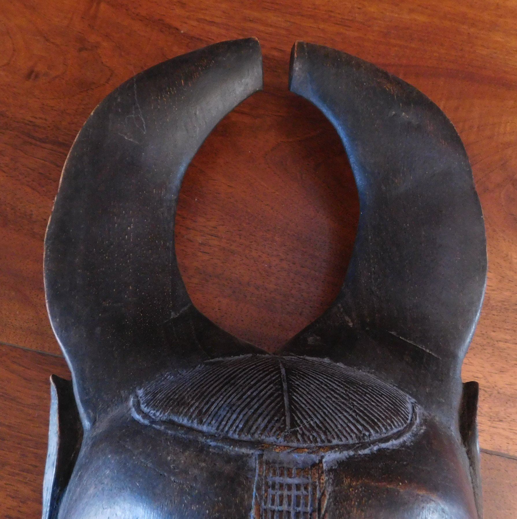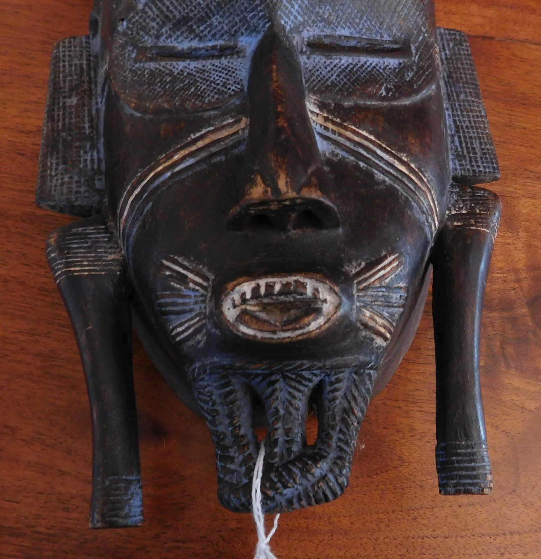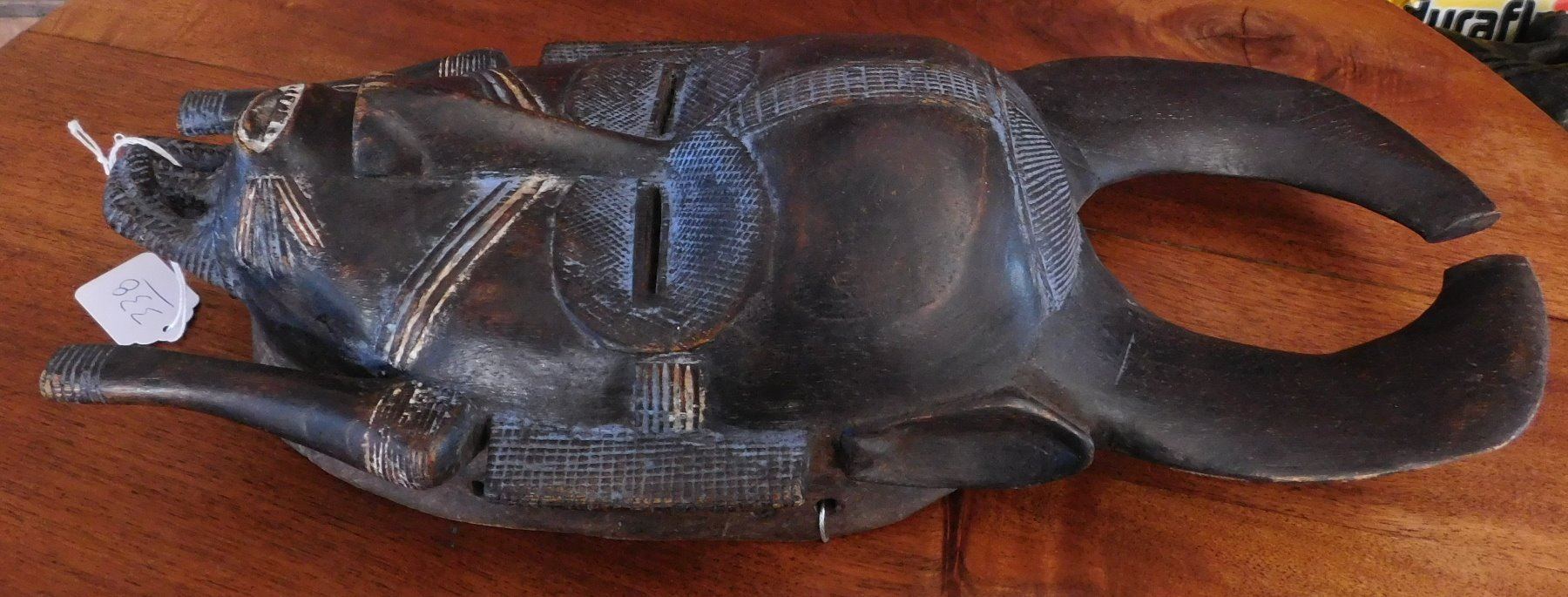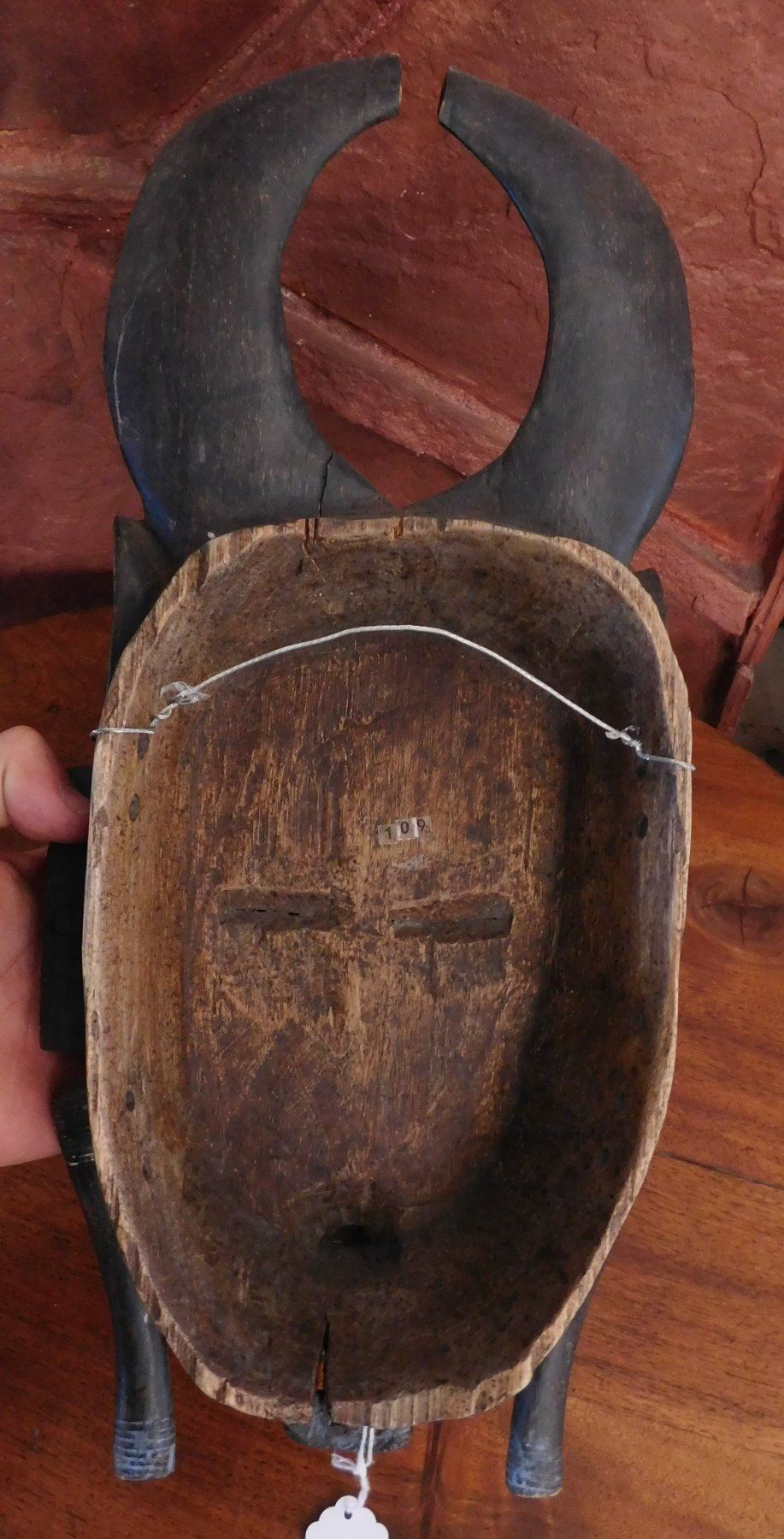 Large Ligbe Mask, early 20th century item. Made of wood and paint, the item measures 7" x 17". Ivory Coast. Condition: Good, some wear and paint loss, see images. Shipping: $30.00 w/insurance and signature, due to size.