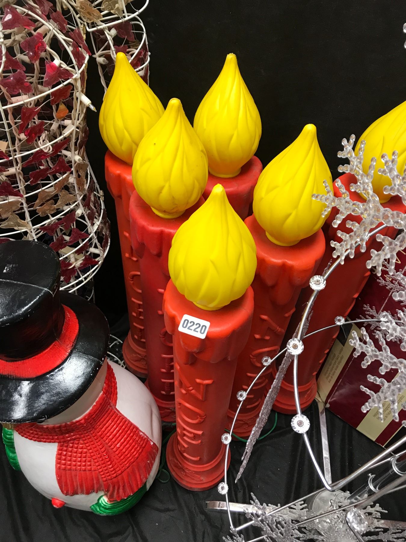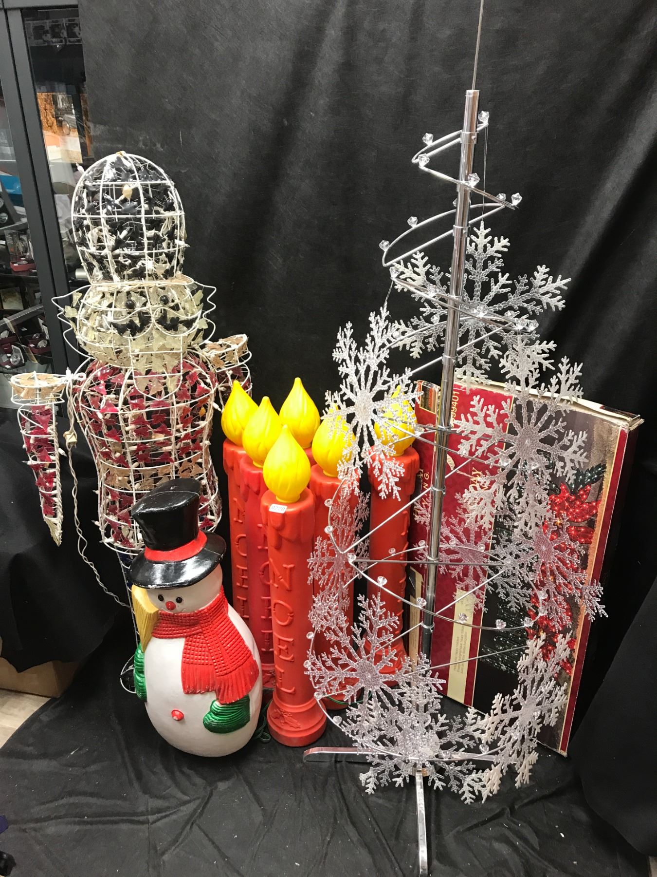 Large Lightup Outdoor Nutcracker, Merry Christmas Sign, Blow Mold Snowman, Noel Candles & Rotating Christmas with Snowflakes