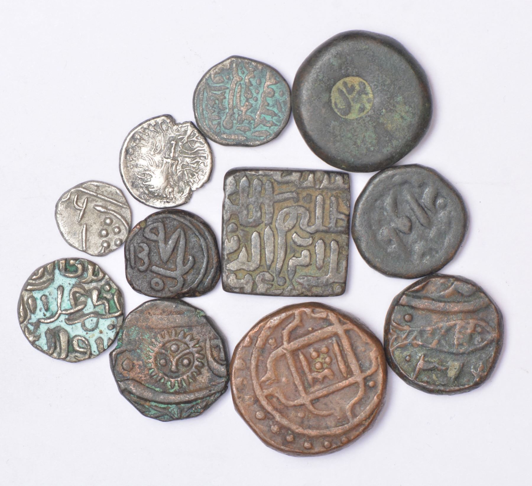 A group of 11 silver, billon and copper coins, includes Ancient, Sultanate, Mughals and States, various types. (11 coins)