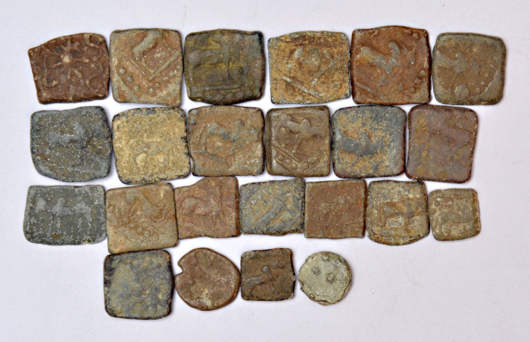 A group of 22 Western Kshatrapa lead coins, includes various rulers, dates and weight. (22 coins)