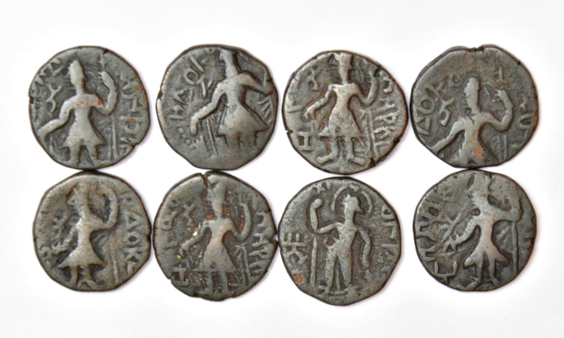 A group of 8 Kushan Kanishka copper quarter unit, includes various types. (8 coins)