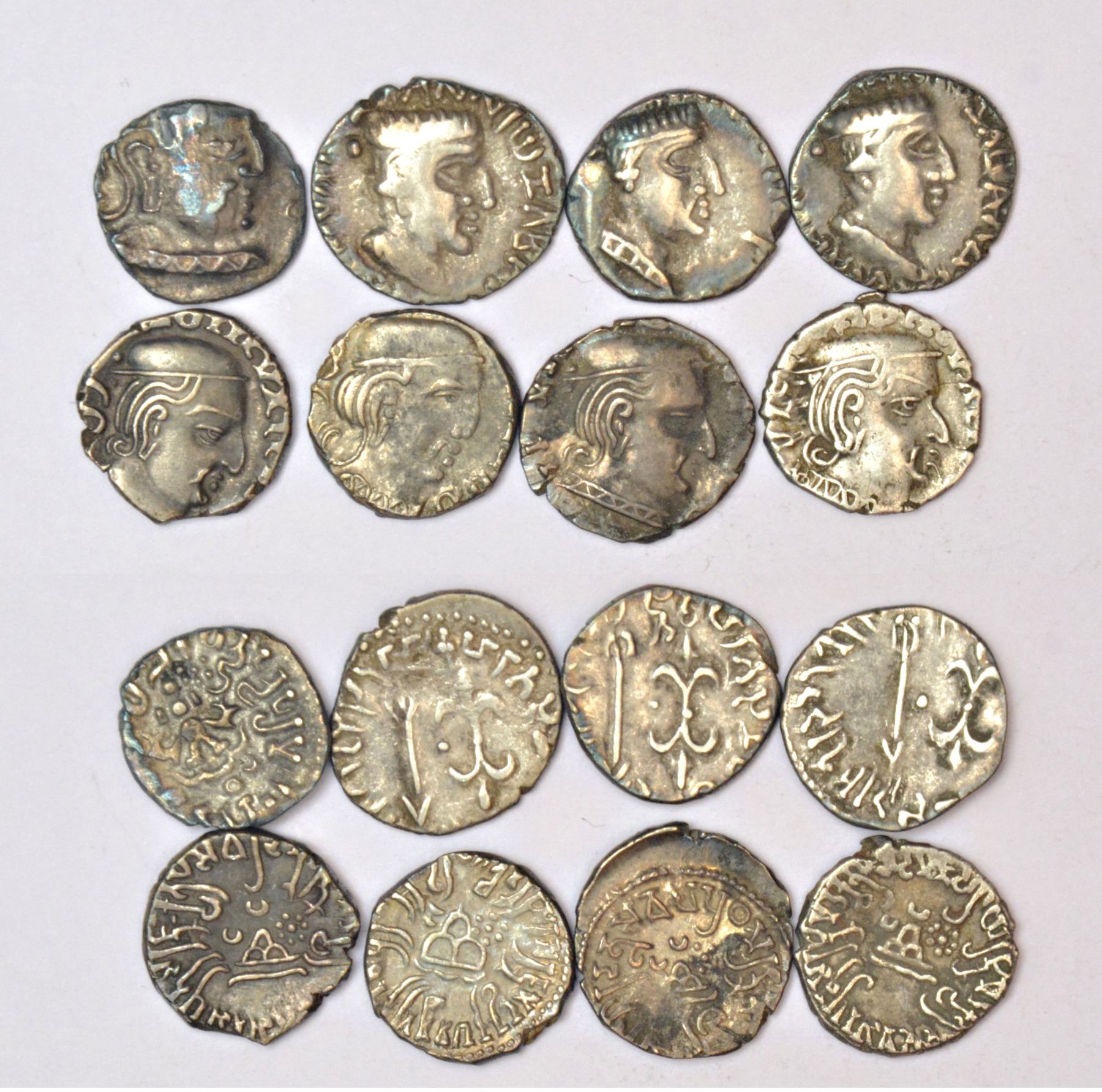 A group of 8 Western Kshatrapa and Gupta silver dracham, includes 1x Gupta; 4x Nahapana; and 3x Kshatrapa, various ruler and types. (8 coins)