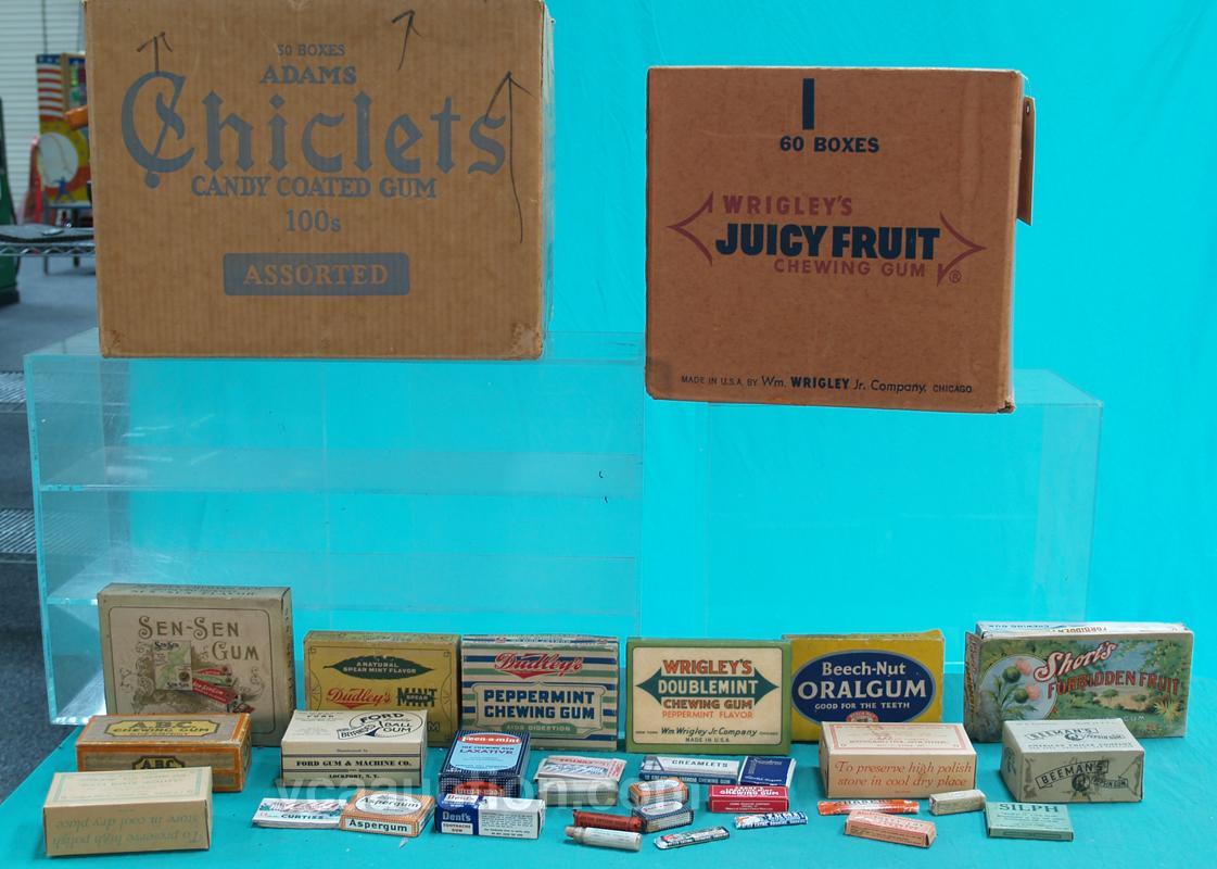 Large Lot Of Chewing Gum Items Including: - 2 cardboard shipping boxes for Juicy Fruit & Chiclets (good condition), alot of various old empty gum boxes (mostly cardboard) & alot of various health related chewing gum products.