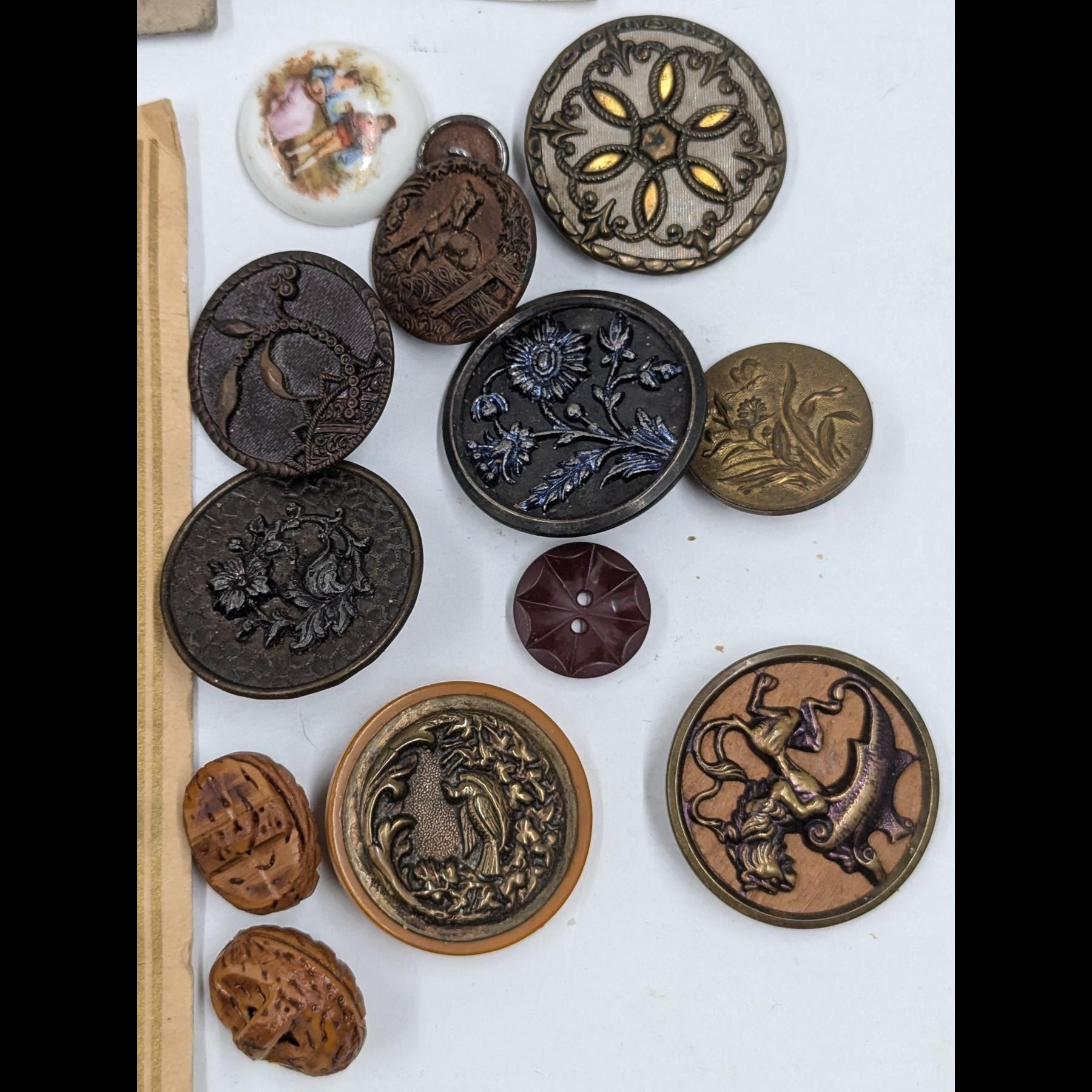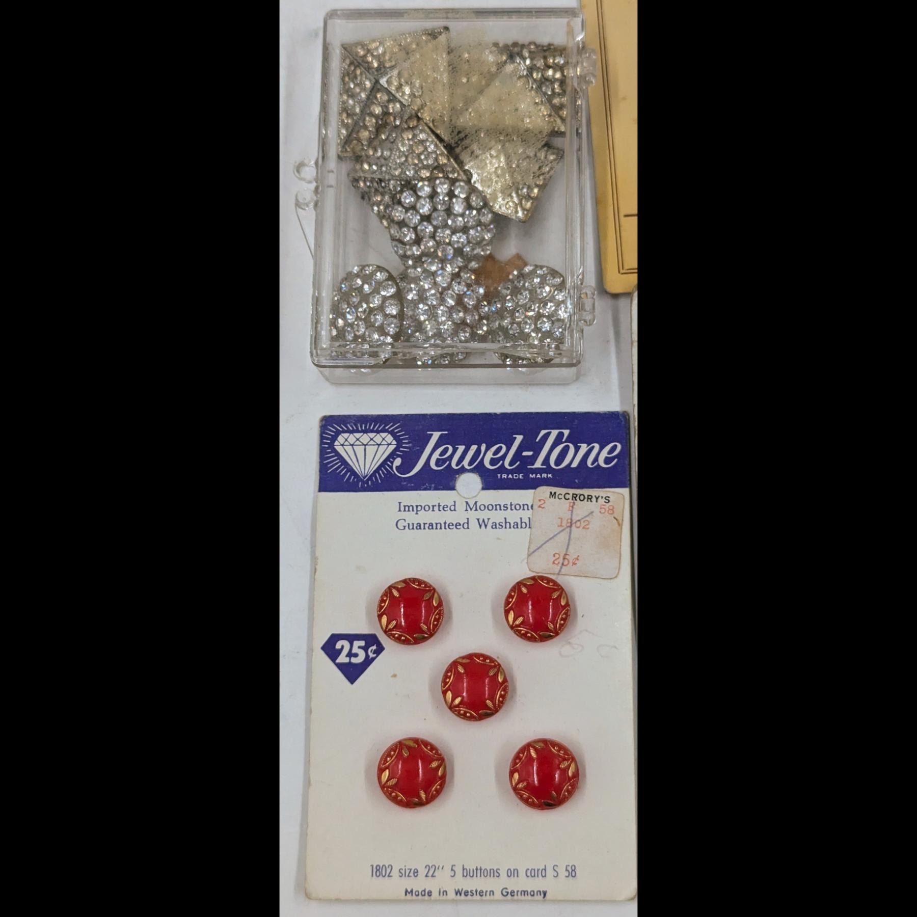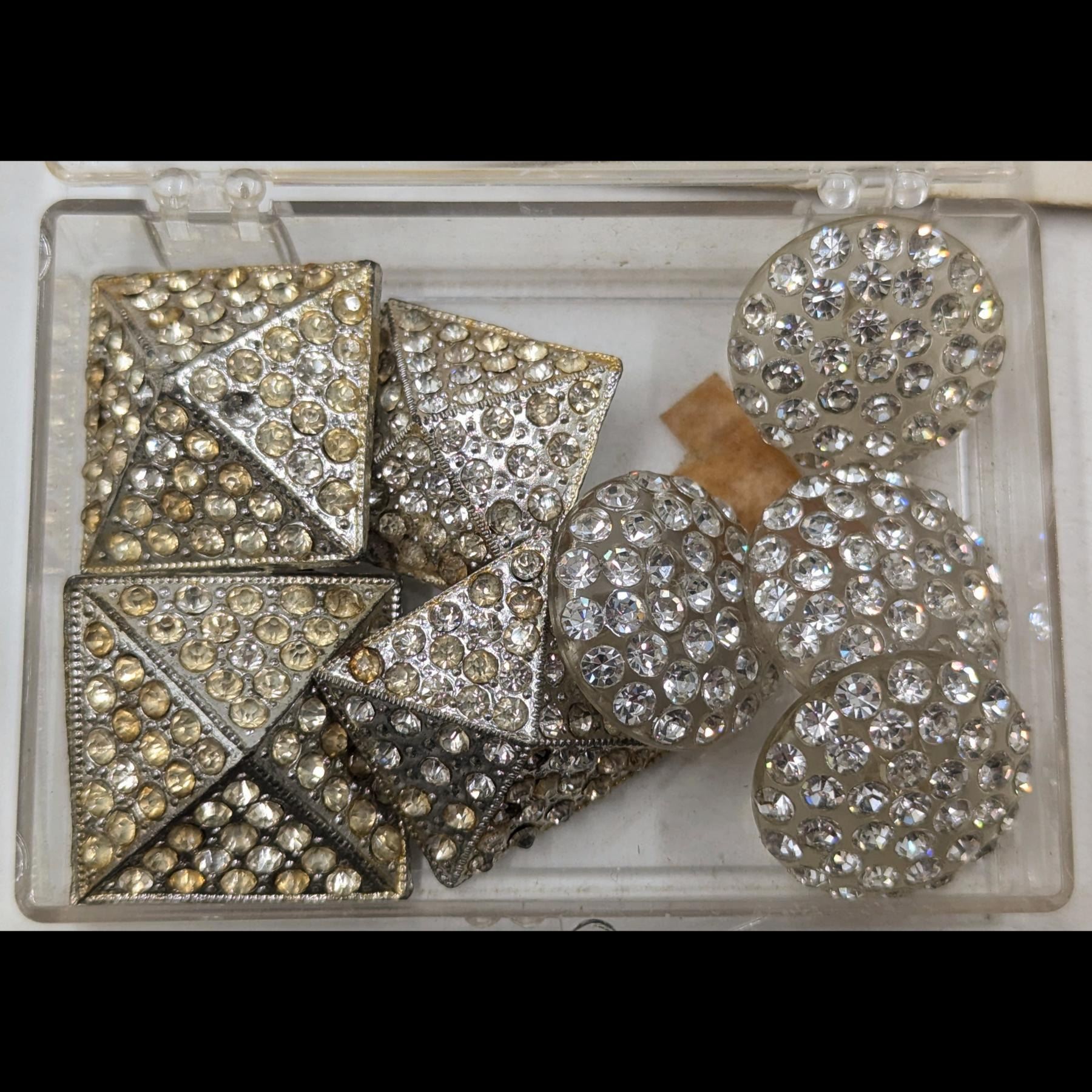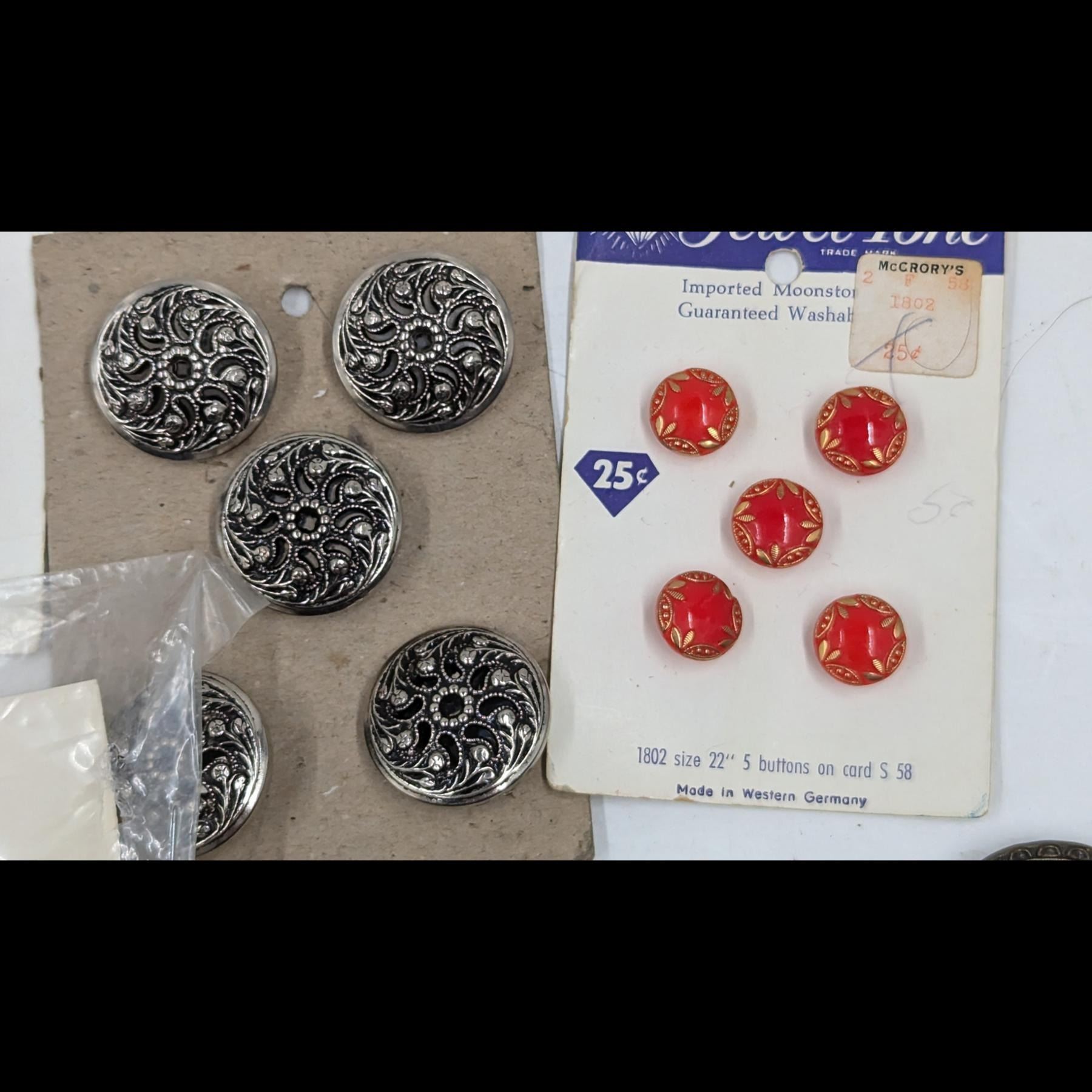 Large Lot Of Vintage Buttons Of Various Styles And Designs, Approx. 150 Items. This lot consists of 8 carded button sleeves from a variety of manufacturers There are about 75 black glass inlaid brass buttons and some rhinestone buttons.