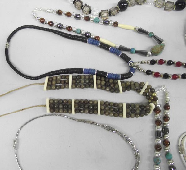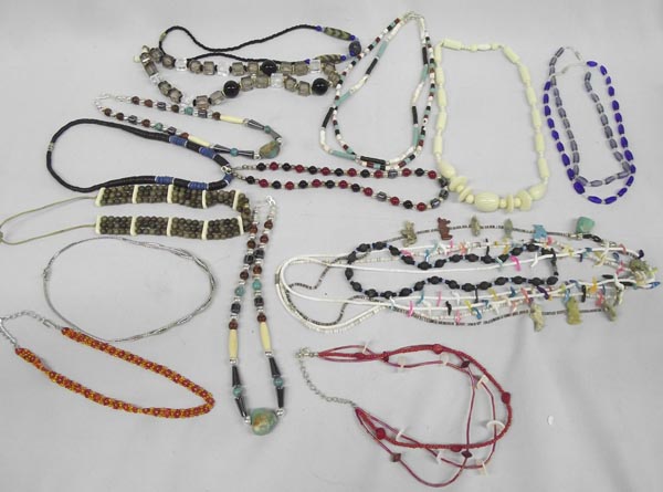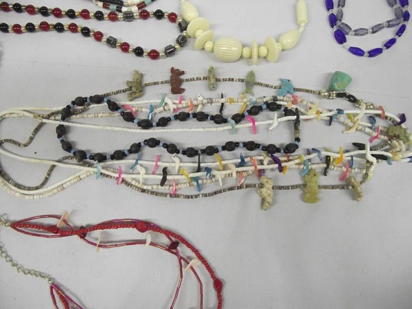 Large llot Native American Pueblo necklaces plus. Various lengths, some turquoise, heishi, beaded, fetish, etc. Buyers Pay Actual Shipping and Handling Charges(see terms and conditions for more information).