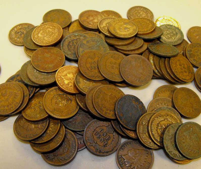 A large lot of 1000 Indian head cents- from actual photo-1880-1900's. Goods- cleaned- full date readable- some with rim damage, most grade out at over $ 1.60 each