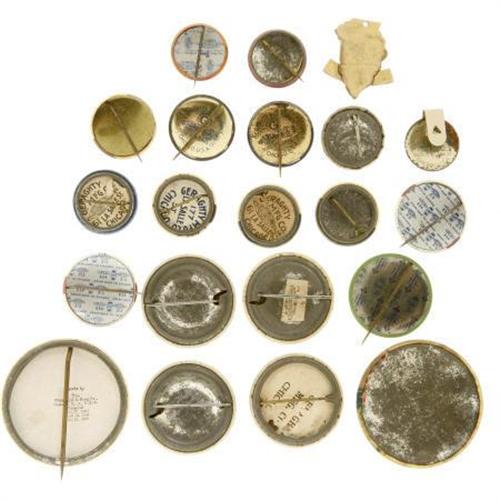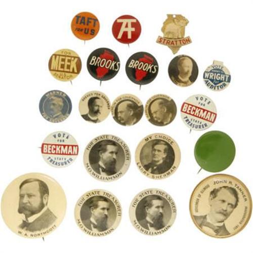 <B>Large Lot of 21 Illinois and Michigan Locals</B></I>. A group of 21 campaign pins from local elections in Illinois and Michigan. Eleven of them are turn-of-the-century and ten are 1940s and up.<BR><BR><b>Shipping:</b> Miscellaneous Collectibles, Smal (<a target="_blank" href="http://www.heritageauctions.com/common/shipping.php">view shipping information</a>)