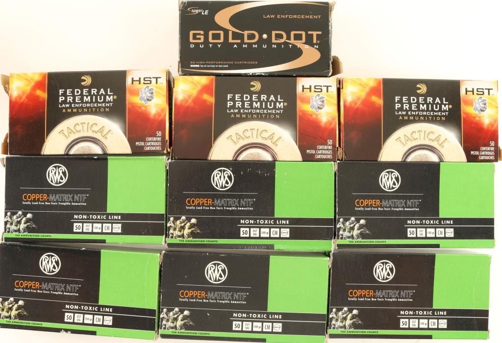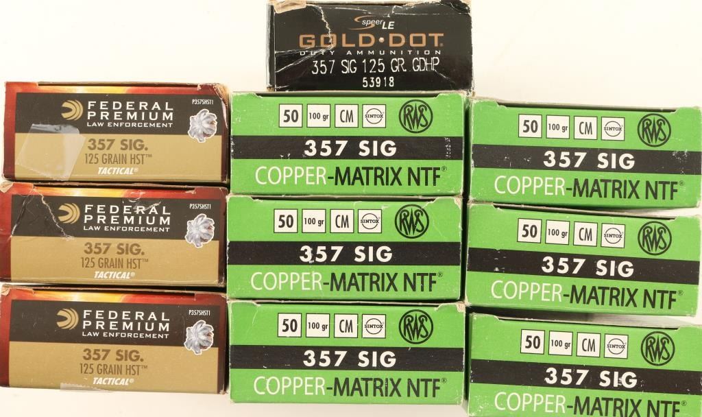 Includes 300 rds of Copper-Matrix NTF .357 SIG, 47 rds of Gold Dot .357 Sig, and 134 rds of Federal Prem. .357 SIG