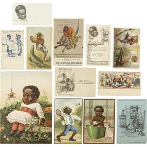 <B>Large Lot of African American Related Ephemera</B></I>. A group of 12 items including color post cards, advertising post cards, and other types of ephemera with caricature illustrations of African Americans. The majority of these items date from the late 19th century. All are in about fine condition.<BR><BR><b>Shipping:</b> Flat Material, Small (<a target="_blank" href="http://www.heritageauctions.com/common/shipping.php">view shipping information</a>)