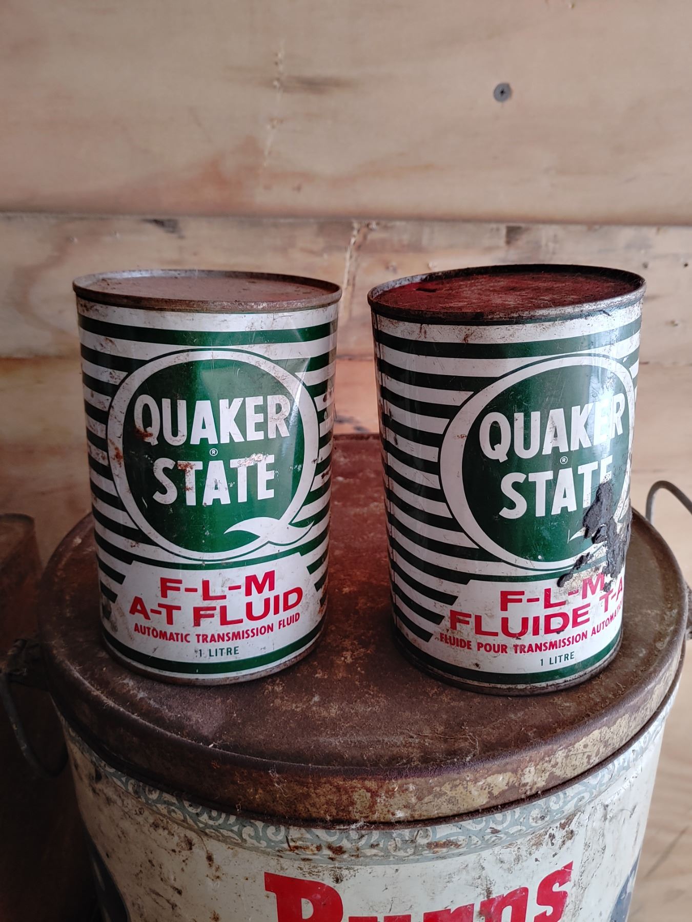Large Lot of Antique Cans and Tins (1 Quaker State Still Full)