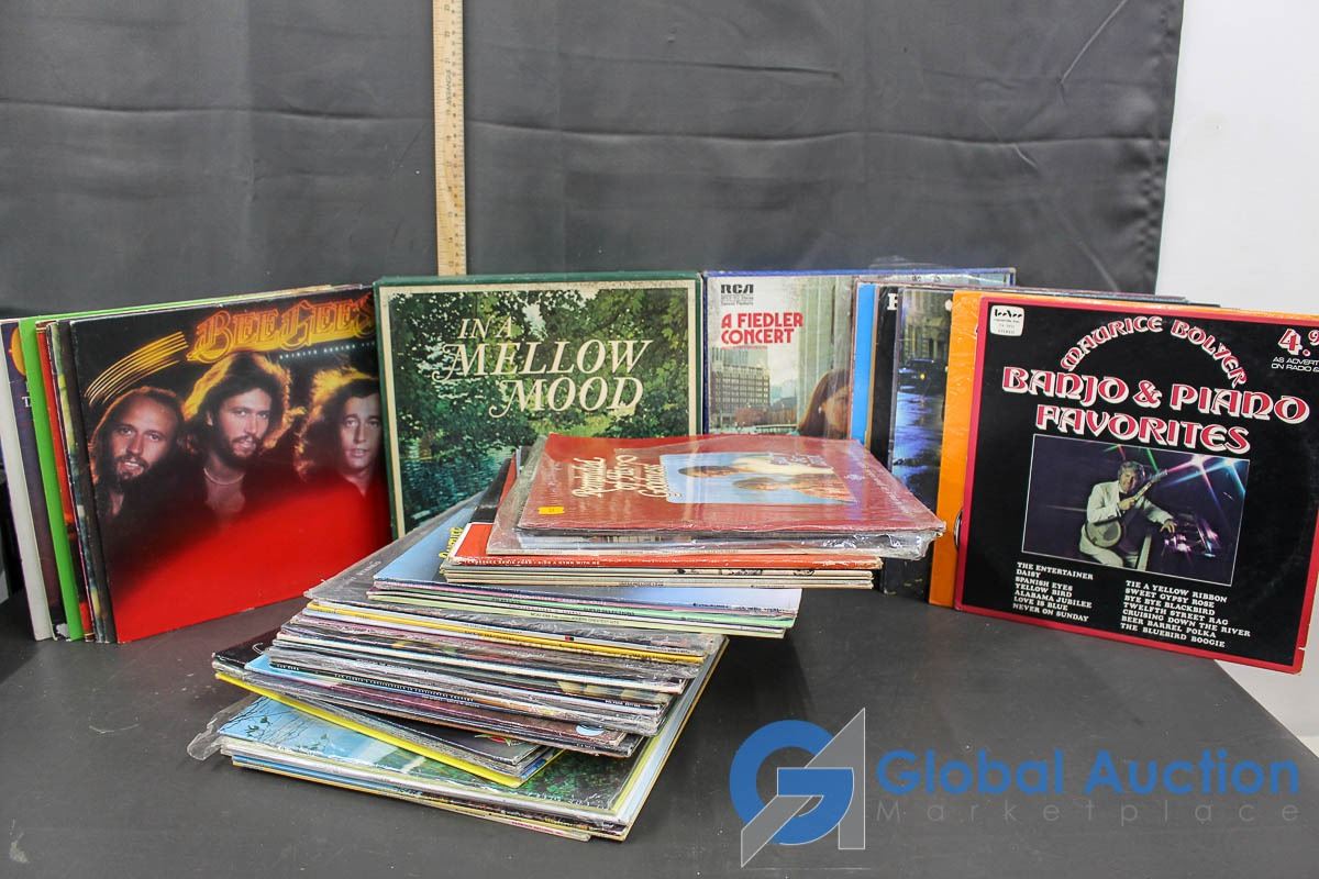 Large Lot of Assorted Records - Bee Gees, Eric Clapton, Olivia Newton John, The Beatles