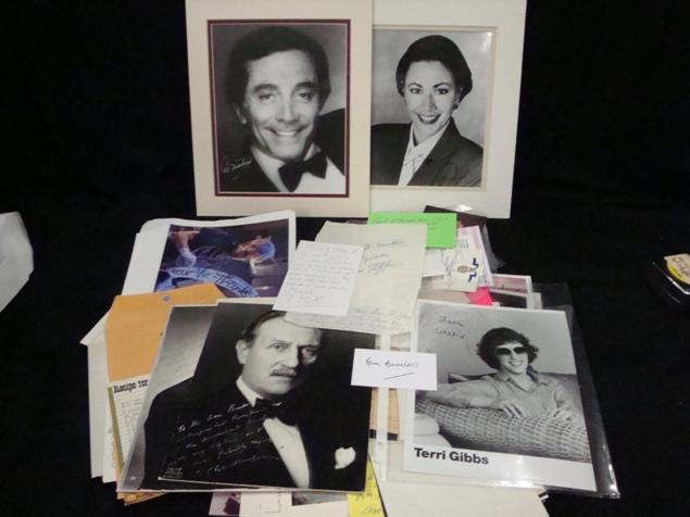 Dozens of autographed photos, letter, signature cuts, etc of Hollywood types, politicos, broadcasters, etc.